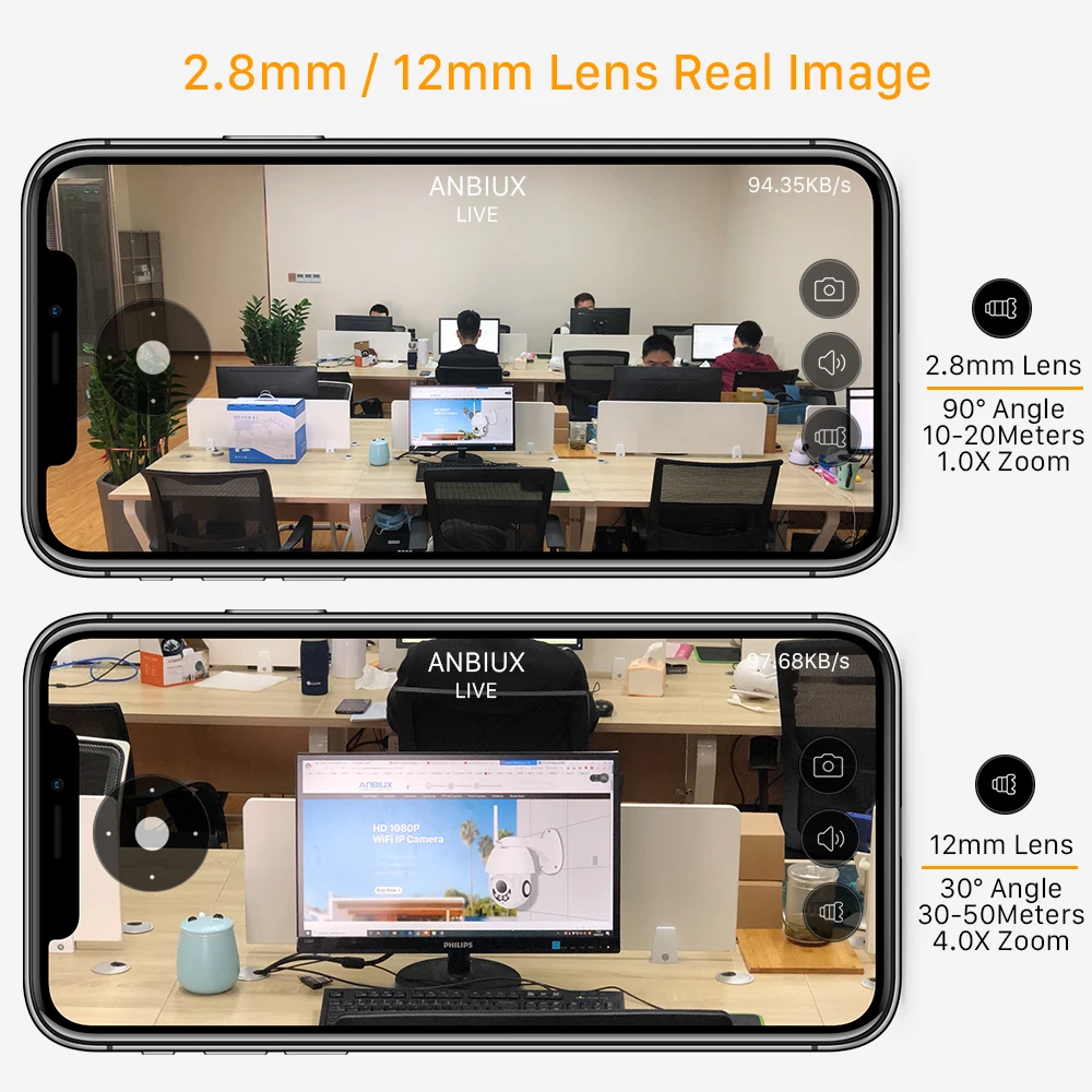 Легко переключать 1.0X на 4.0X Zoom мгновенно в приложении.