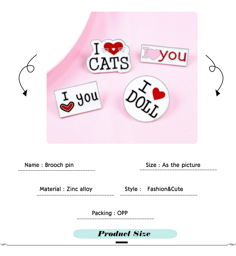 Мультяшный буквенный лозунг, эмалированные булавки, Милый значок, я люблю кошек, ты, кукла, отворот, булавка, женская сумка для одежды, ювелирные изделия, аксессуары