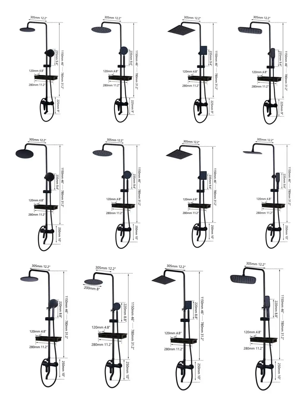 (8)* размер душевой головки: 8 дюймов