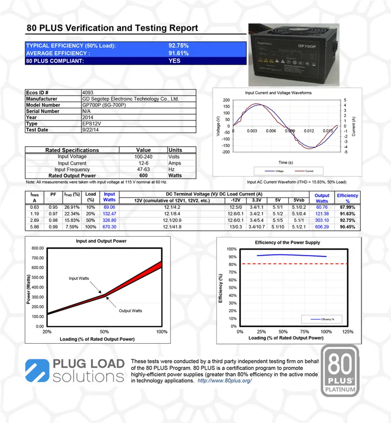 Reach 80 plus платиновая Сертификация под 115V сетевая среда