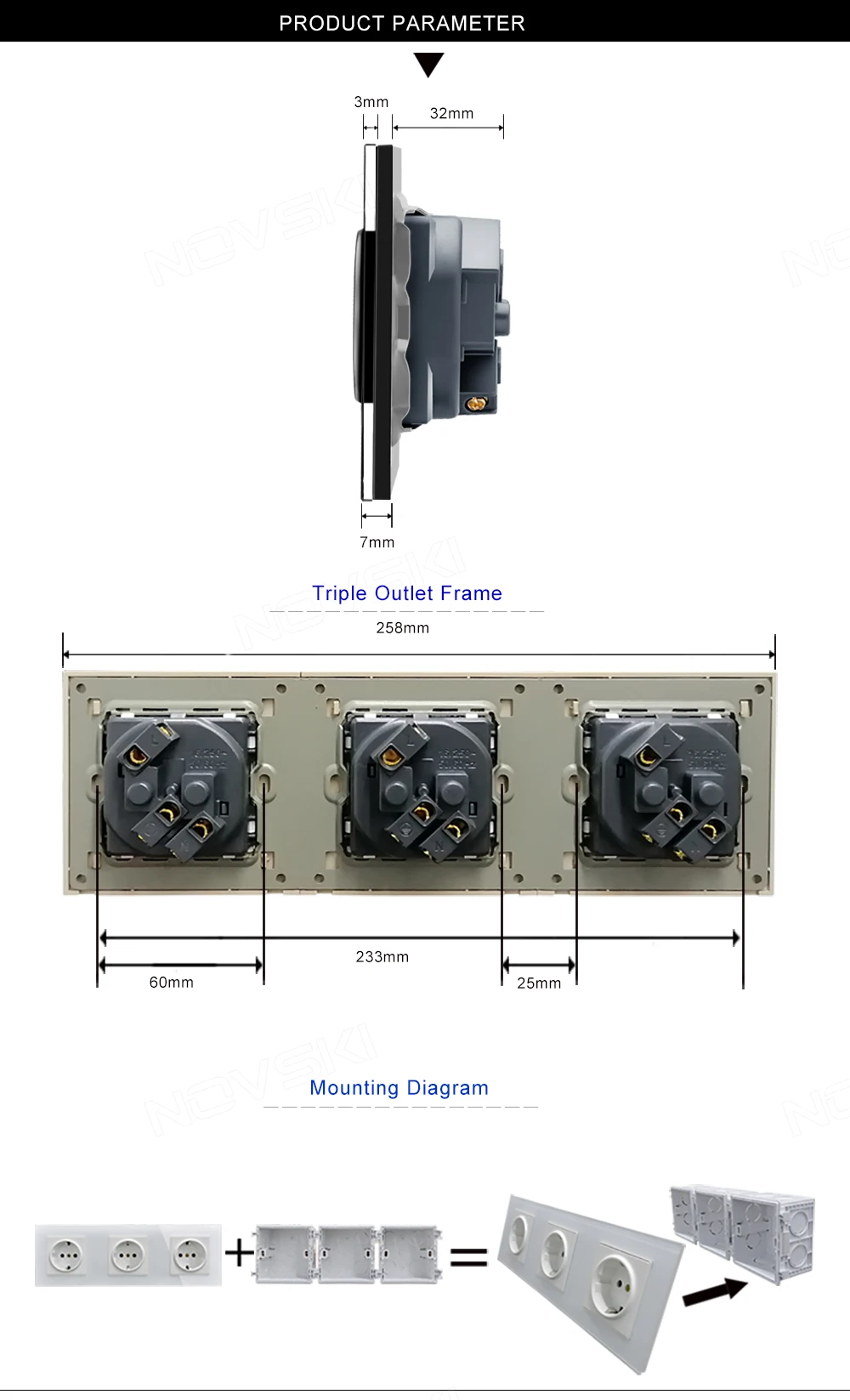 -Тройная рамка 86*258 мм (3 рамная панель)
