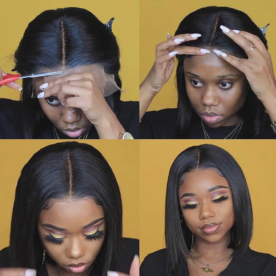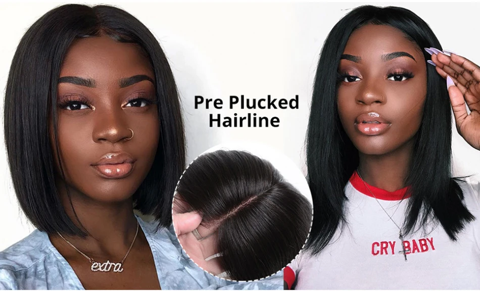 Парик Боб с тупой стрижкой, бразильские человеческие волосы, Короткие парики, прямые парики боб для чернокожих женщин, Remy, 4X4, парик на сетке с детскими волосами Jessenia