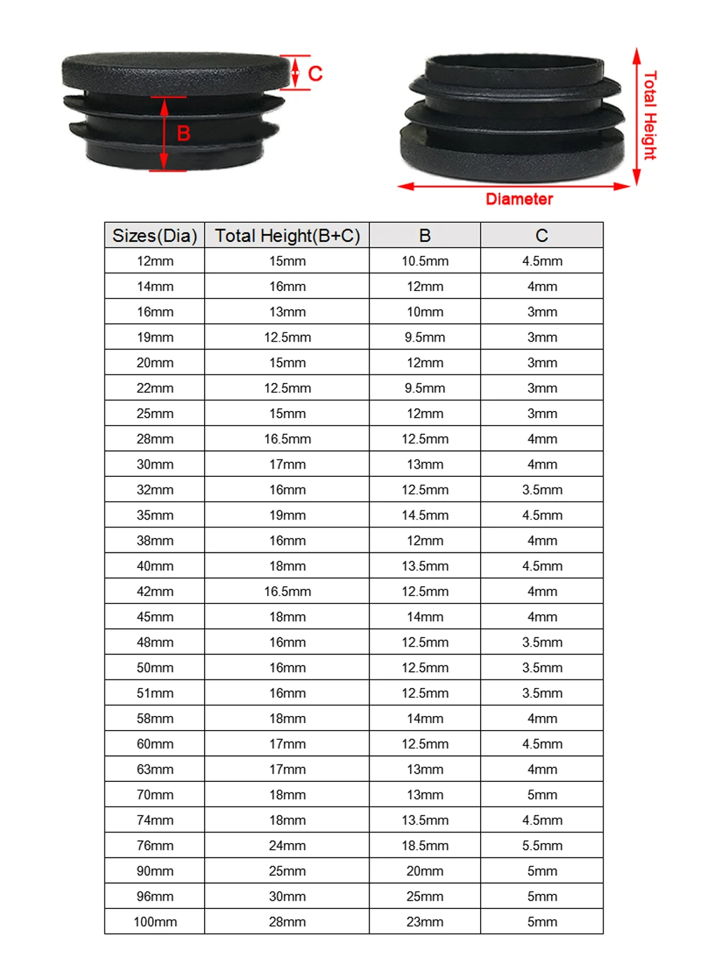 Описание:Материал: ПЭ пластикЦвет: черныйРазмер: диаметр от 12 мм до 100 ммЕсли вам нужен другой размер и цвет, пожалуйста, свяжитесь со службой поддержки клиентов.Как измерить: размер колпачков определяется по внешнему диаметру трубкиПосылка:По вашему выбору