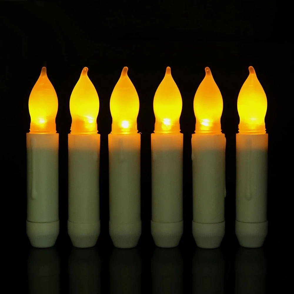 ≥Для всех и везде-диаметр 2 см, высота 11,5/16,5 см. Эти реалистичные конусные свечи на батарейках имеют теплое мерцающее Янтарное желтое пламя, идеально подходит для обеденного стола, церкви, дня рождения, свадьбы, камина, Рождественского украшения. Сюрприз в том, что вы можете повесить их с лески на потолок для спальни/вечеринки или других случаев.