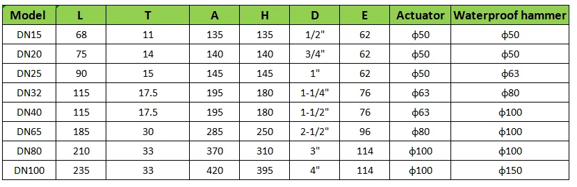 Технические параметры Размер: DN15,(1/2 ”,BSP) Средняя температура: от-20 ℃ до 180 ℃ Температура окружающей среды: от-20 ℃ до 60 ℃ Номинальное давление: 1,6 МПа (16 бар) Контроль газа, воздуха Давление воздуха: 0,3-0.8Mpa Материал корпуса клапана: CF8/CF8M Материал сиденья: ПТФЭ Материал стержня: 304/316L Материал пружинного кольца: NBR