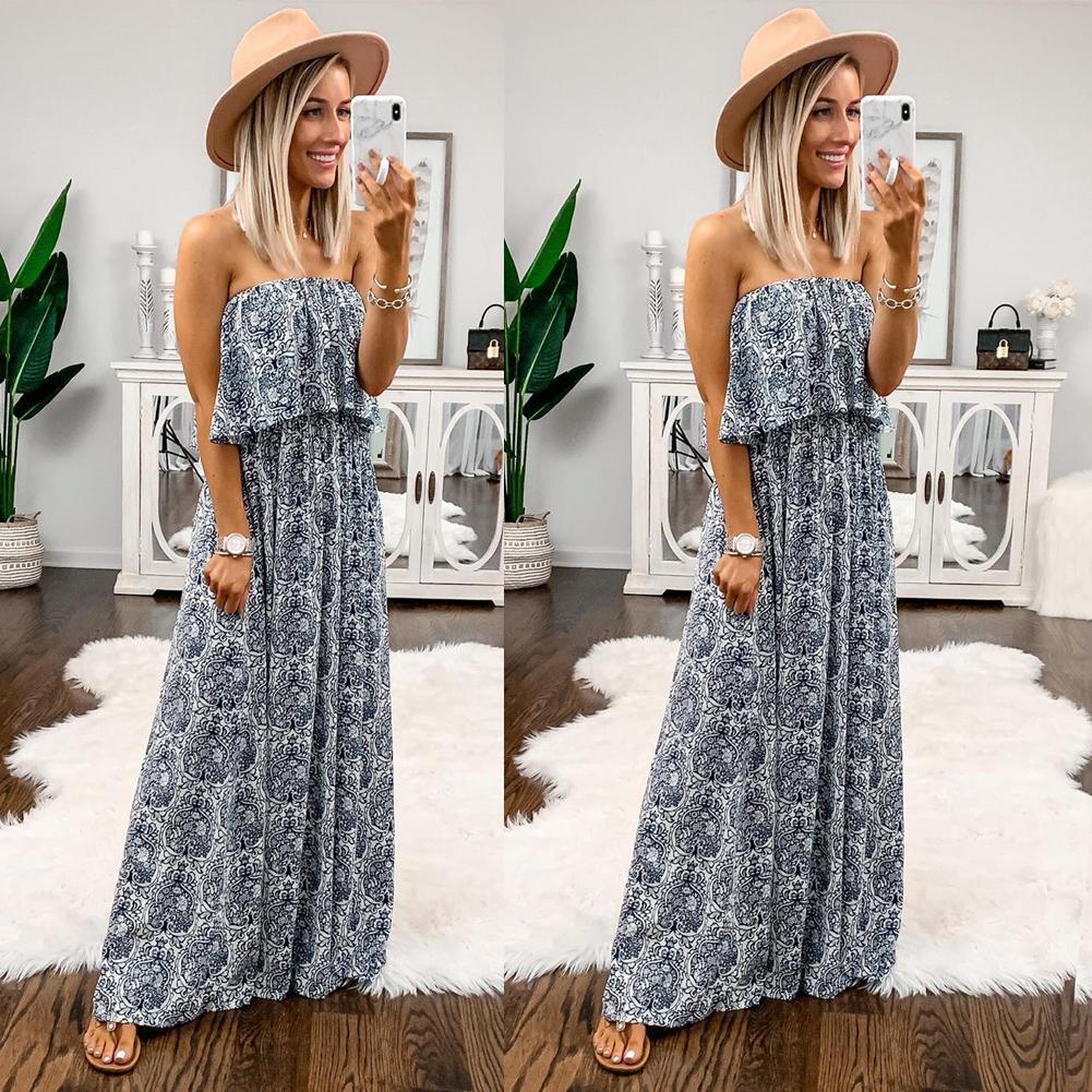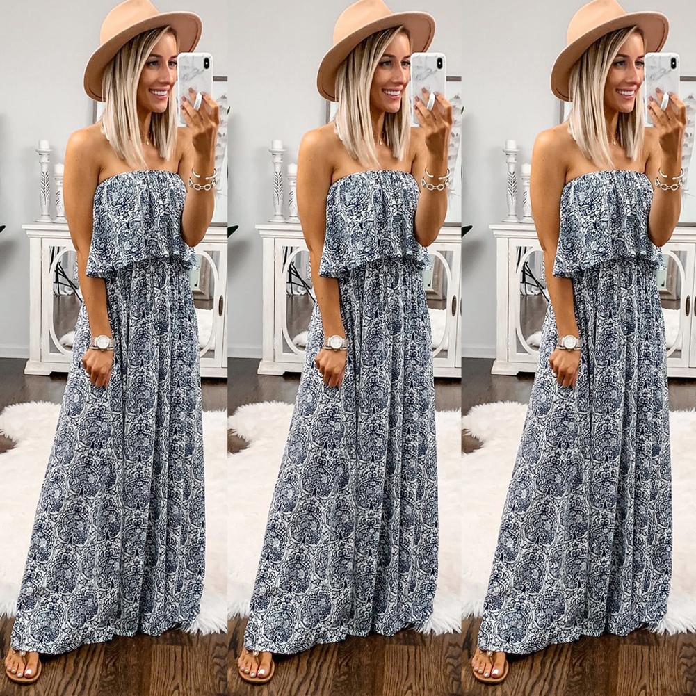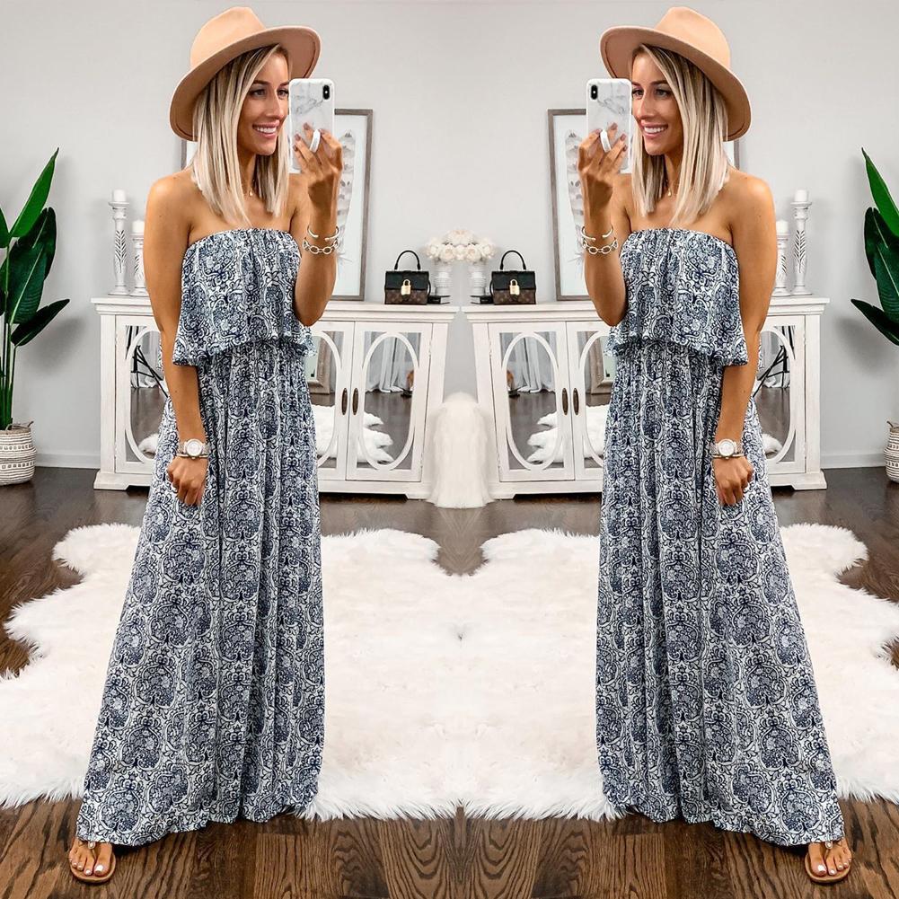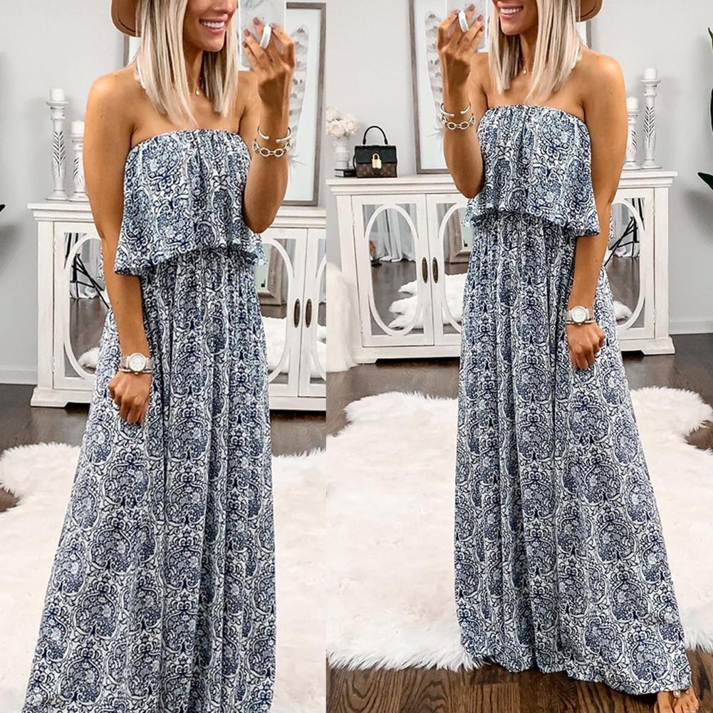 Модное женское летнее платье в стиле бохо, сексуальное длинное Пляжное Платье макси с цветочным принтом и открытыми плечами для вечерние, женское платье