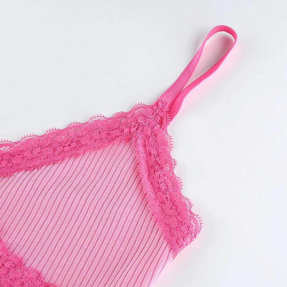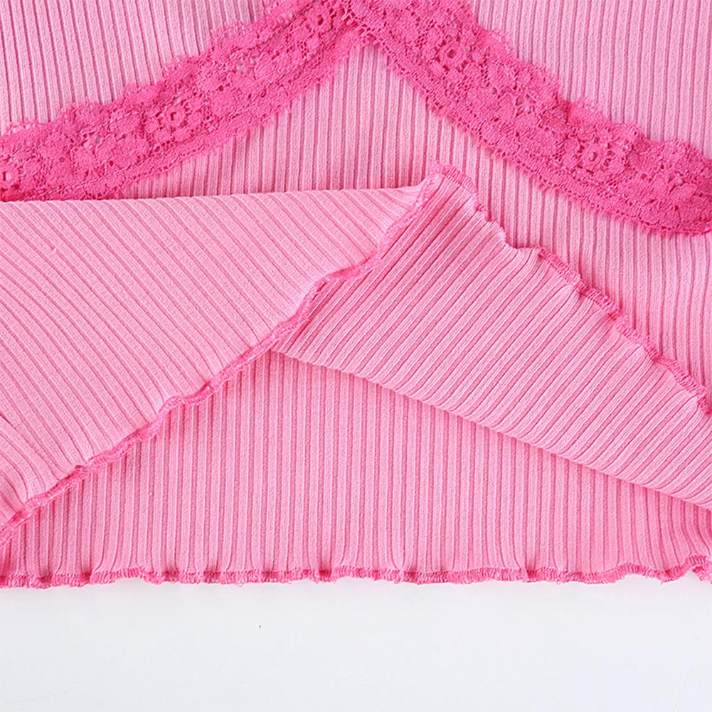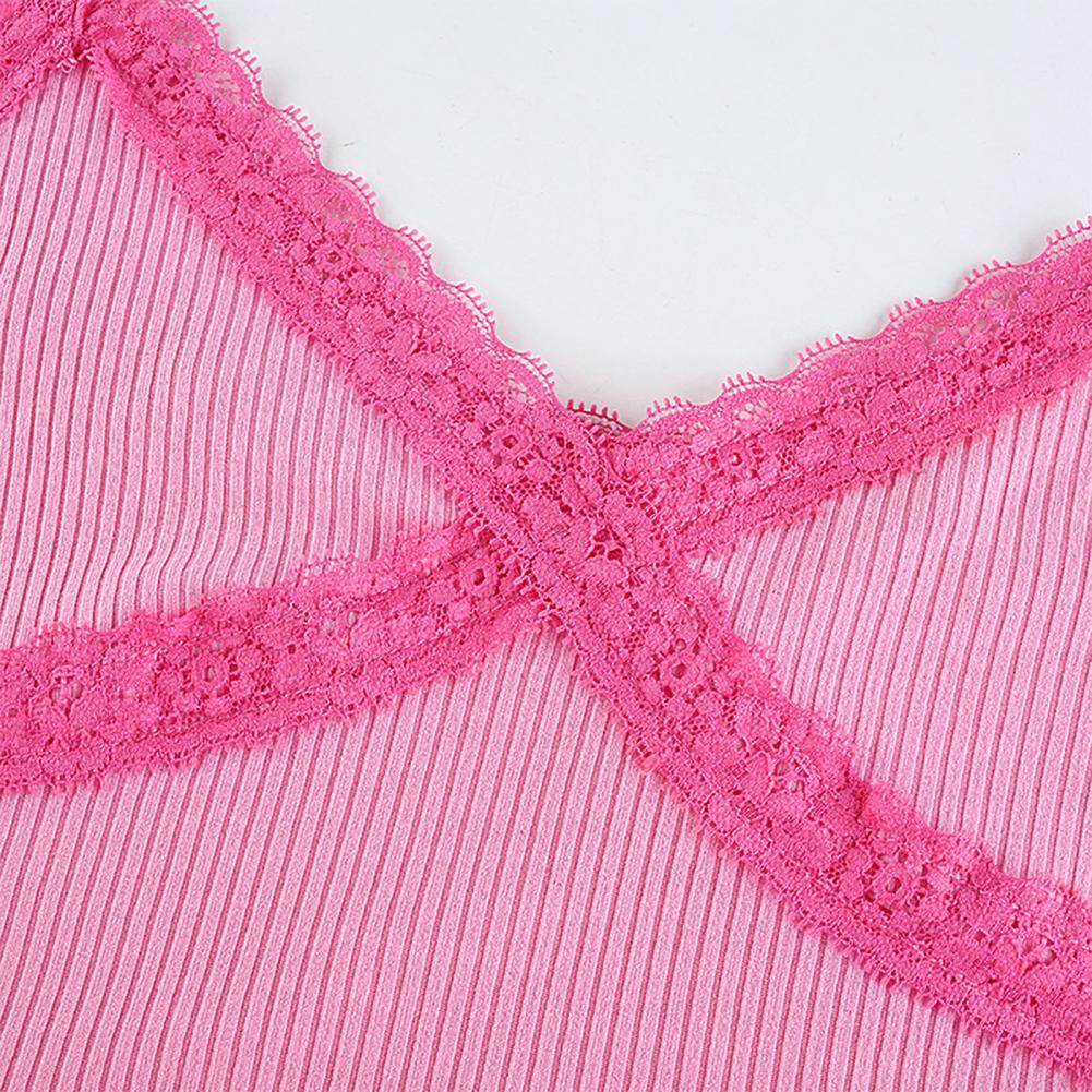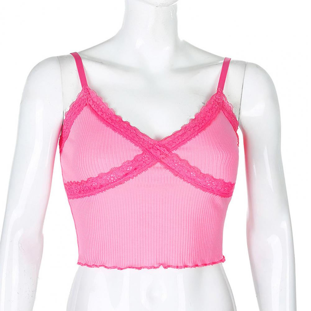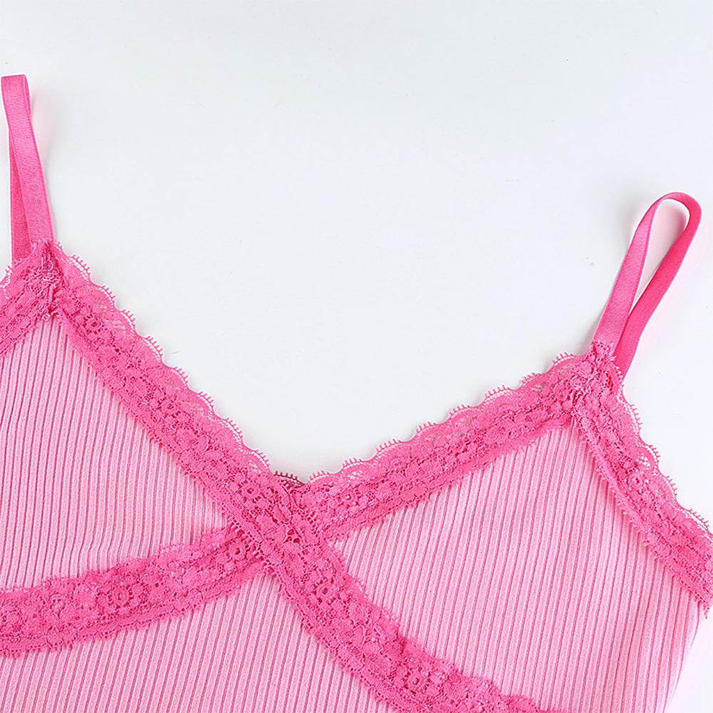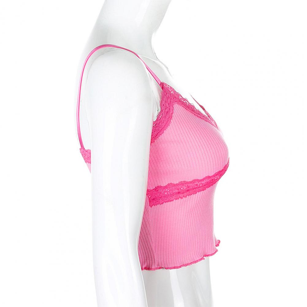 Кружевной милый розовый укороченный Топ для женщин, 90s, Розовый Повседневный Топ Без Рукавов на бретельках, сексуальная майка с открытой спиной, 2021