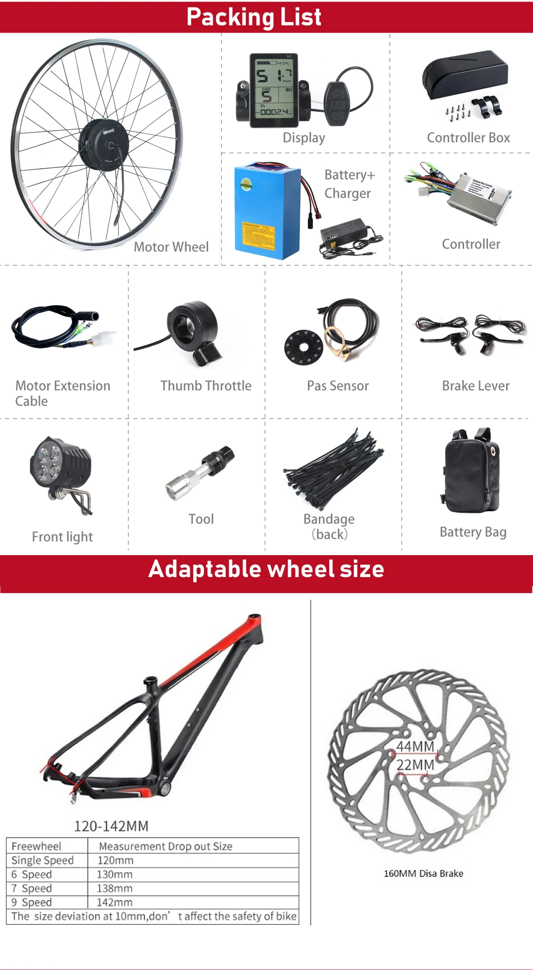 Набор для электровелосипеда 36 В 500 Вт комплект с литиевым аккумулятором и