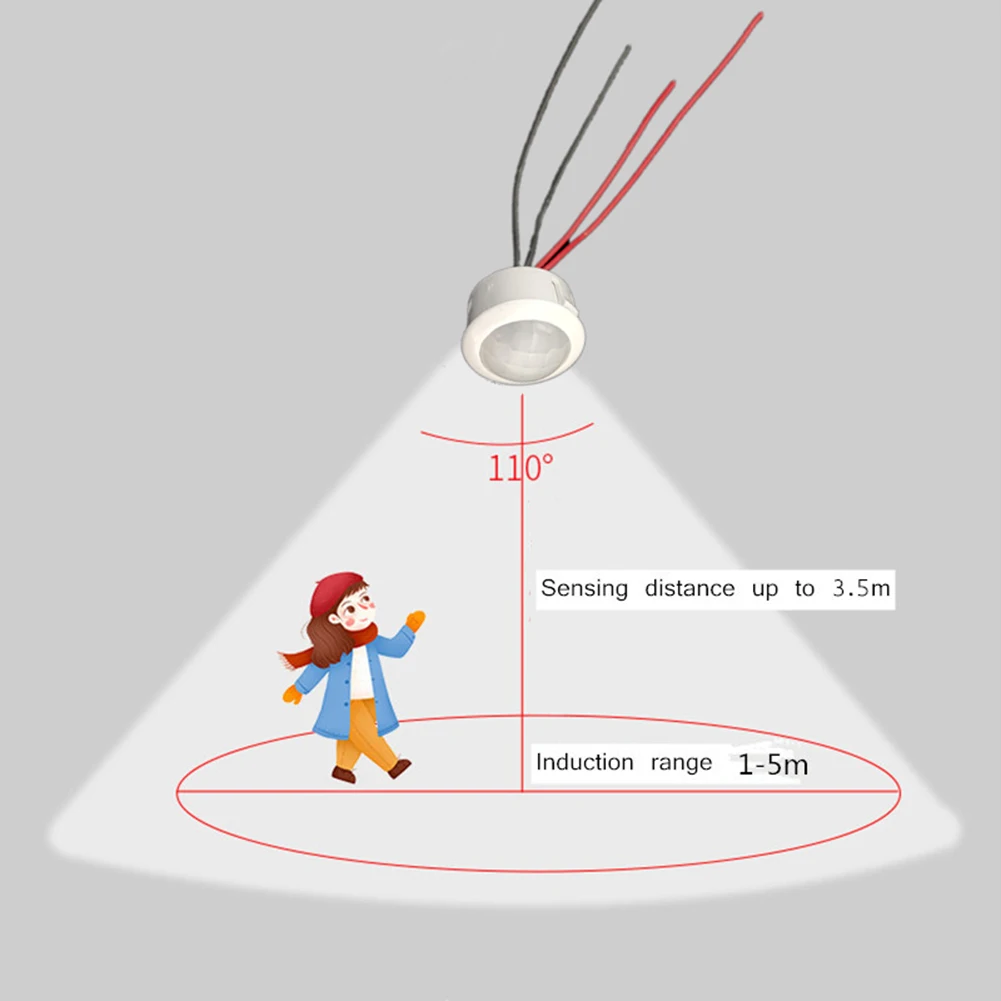 ![]() DC 12V 24V Wiring Infrared Sensor 18W Ceiling Lamp Downlight Human Body Induction Switch PIR Motion Movement Sensing Light Switches Feature: The human body induction switch is an intelligent infrared detection sensor, which uses infrared detection to control the load switch. The light is turned on and off by detecting the temperature of the human body. When someone approaches, the sensing device will be triggered to start working. After the person leaves the sensing area, the sensing device will automatically turn off after the set time. Ensure that the light is on when the person comes. The light is off. Realize the effect of energy saving and energy saving to the greatest extent. Users can install the human body sensor in the appropriate environment according to actual needs (such as ceiling lamp, bathroom, kitchen, balcony, warehouse, corridor, staircase, garage, etc., which do not require long lighting Place (with light perception, working in dark). Specification: Working temperature: -20-40℃ Input voltage:DC9V-60V Output voltage:DC9V-60V Sensing distance: 1-5 meters (depending on the ambient temperature) Sensing angle: 120° Delay time: about 20-25 seconds Load power: 3-18W Working current: 180-260mA Material: ABS Size: 32*28mm/1.26*1.1" Recommended installation hole diameter: 20mm/0.79" Input line length: 95mm/3.74" Output line length: 55mm/2.17" Note: Due to the different monitor and light effect, the actual color of the item might be slightly different from the color showed on the pictures. Thank you! Please allow 1-3mm measuring deviation due to manual measurement. ![]() 1 X Sensor Switch ![]() ![]() ![]() ![]() ![]() ![]() ![]() ![]()