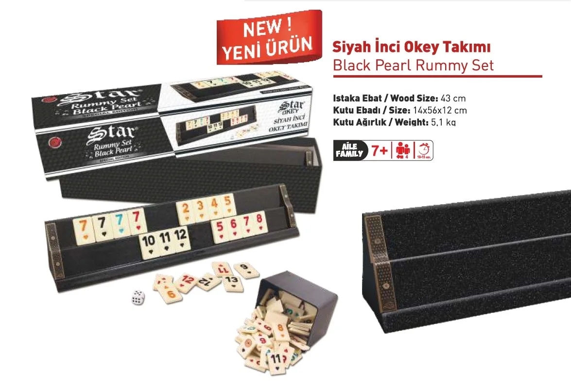 Звездный черный жемчужный Блестящий деревянный Игровой набор Rummy
