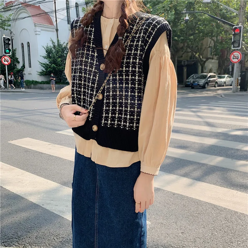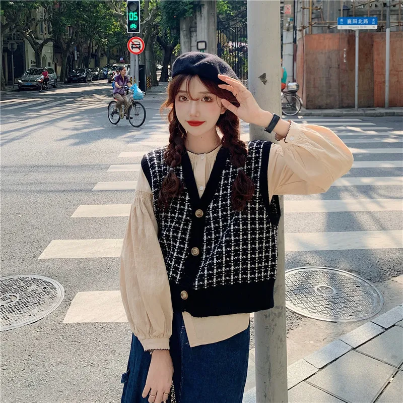Свитер жилет Женский винтажный клетчатый мягкий Повседневный Модный женский