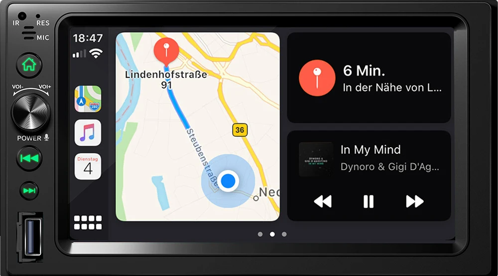 [О беспроводной Carplay с DAB + Style]:Встроенный приемник DAB + и высокопроизводительный тюнер для: DAB + тюнер получает цифровые радиостанции, Доступные без шума, трещин и колебаний уровня. И если нет достаточно сильного DAB сигнала, тюнер переключается на соответствующую частоту FM автоматически и без звукового прерывания. Бесшовное смешивание, Интеллектуальный буфер данных обеспечивает бесшовное смешивание, не нарушая уровень и задержки во времени.