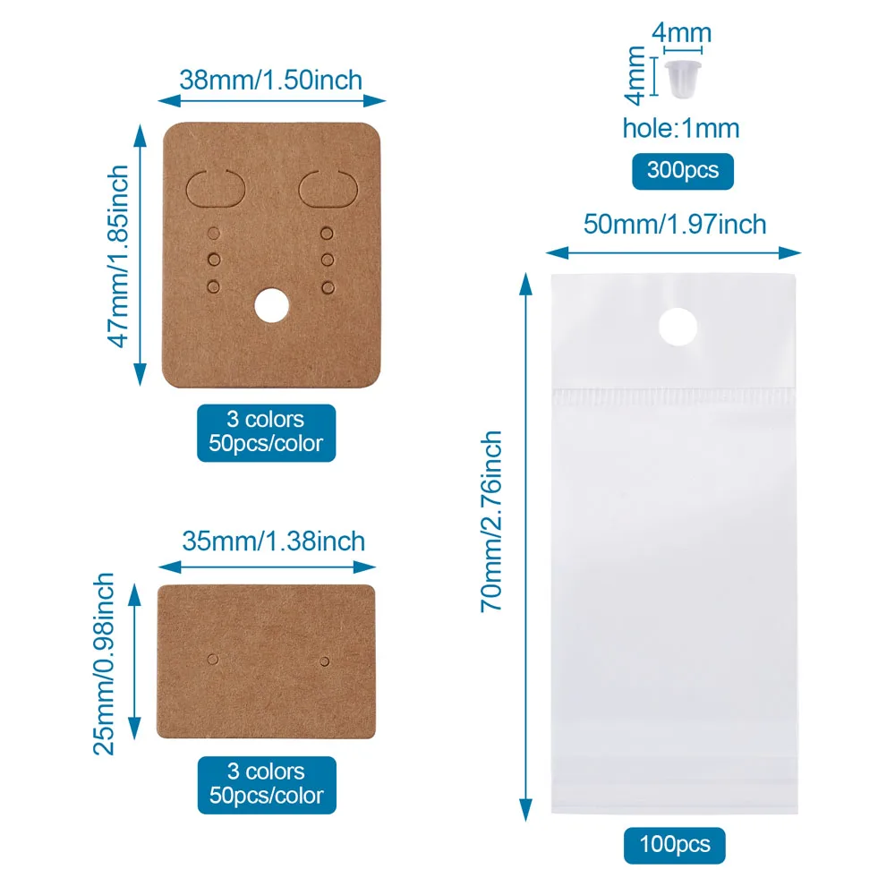 300 шт сережки дисплей подвесные открытки 3 цвета бумажные сережки Визитницы с ушными гайками целлофановые ОПП пакеты для ювелирных изделий Аксессуар