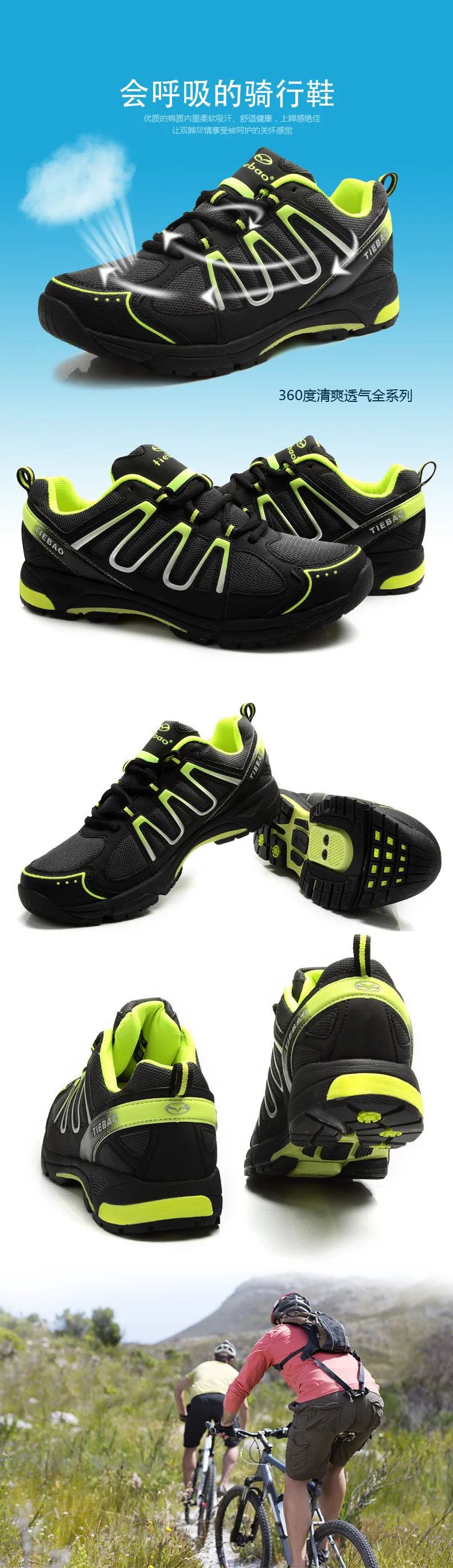 Большой нейлоновый сетчатый верх обеспечивает отличную воздухопроницаемость. Серия Tiebao Road cycling Competition сочетает в себе три наиболее важных свойства конкурентоспособной гоночной обуви: стабильность, жесткость и вес, а также светильник. Нейлоновая подошва из стекловолокна увеличивает ваш нижний ход для оптимальной передачи энергии между обувью и педалью. Сложный материал hobnails повышает стабильность и сцепление.