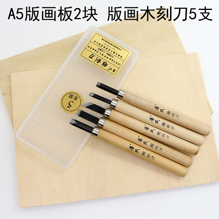 Параметры продукта Спецификация: 2 деревянных доски из липы A5 + 5 резьбовых ножей Размер: доска из липы A5 220*151 мм Длина рукоятки резьбового ножа 11 см, общая длина 13,5 см Вес: 270 г