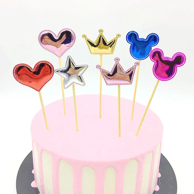 5 шт., любовь, счастливые топперы для торта на день рождения, корона, звезды, кекс, флаги для свадьбы, детские товары для дня рождения, украшения для торта