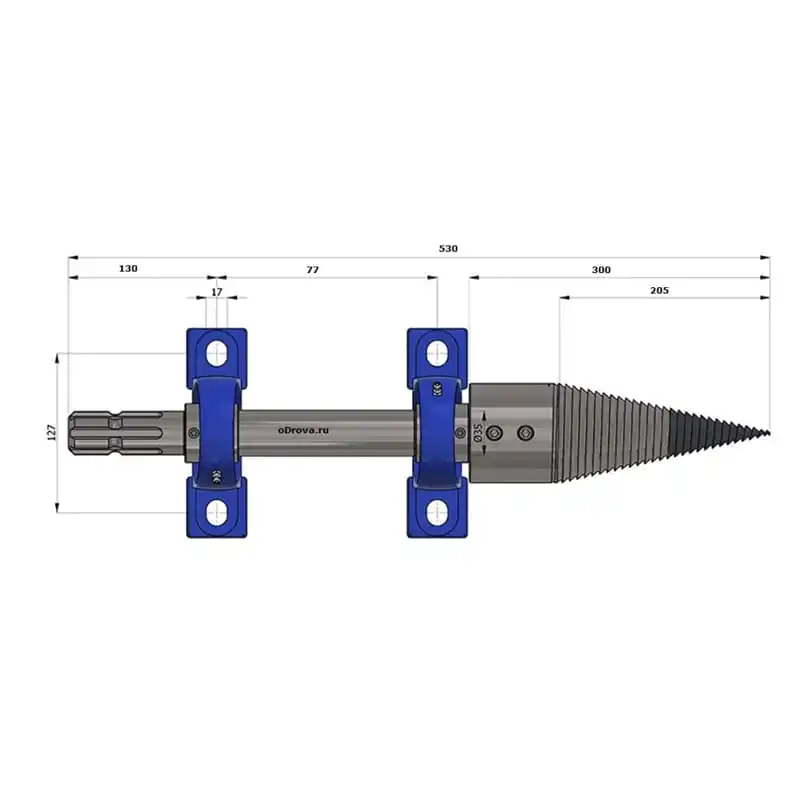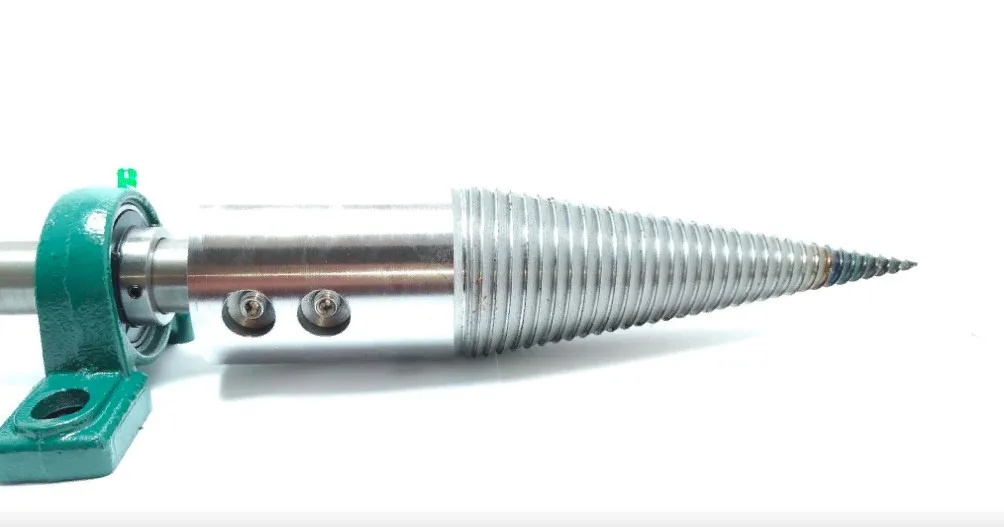 Конус дровокол с двухзаходной упорной резьбой легко цепляет, легко вкручивается, колет твердейшие сорта древесины.