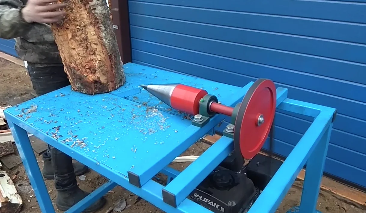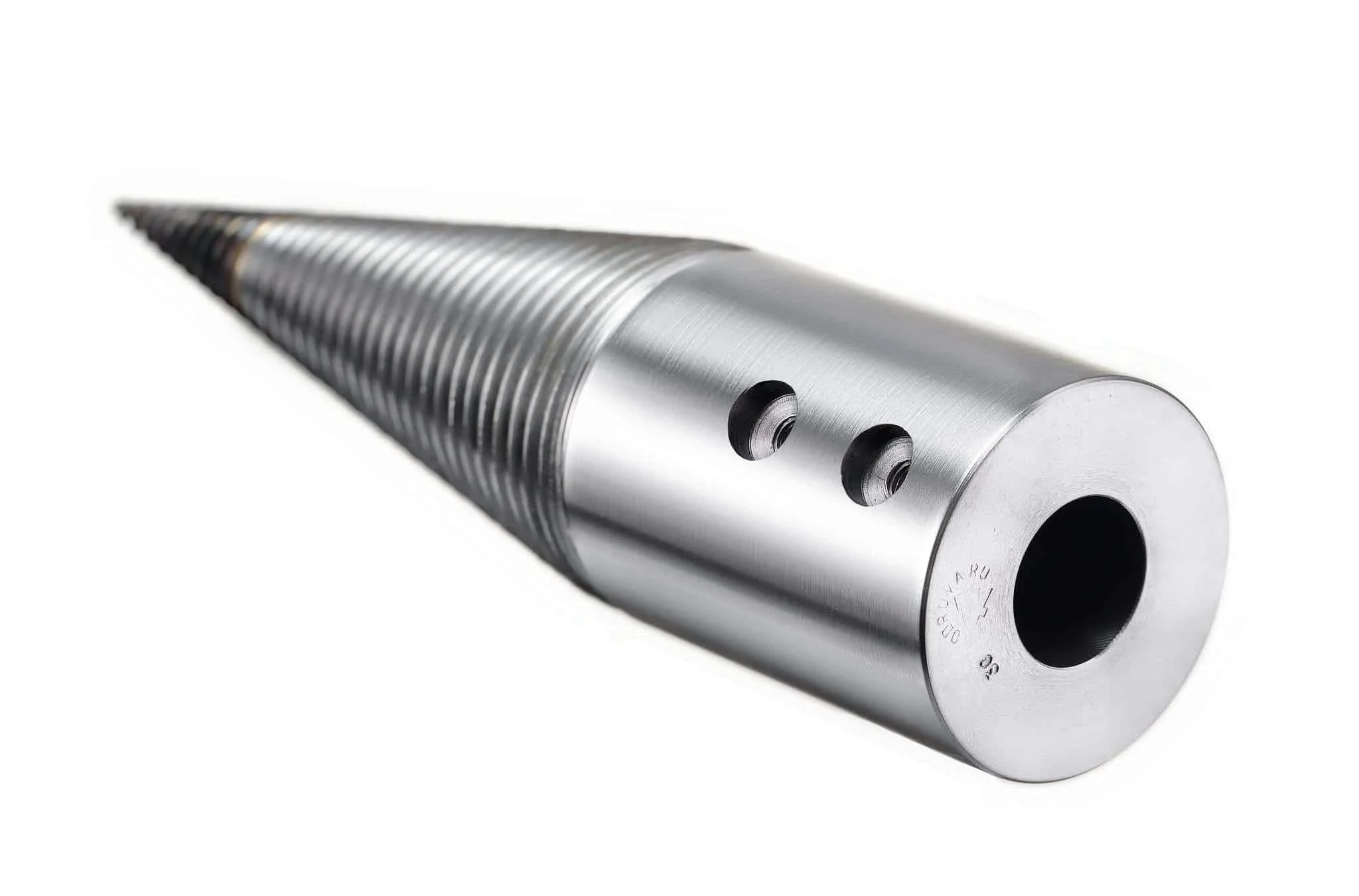 Конус-морковка с упорной двухзаходной резьбой, позволяет колуну легко вкручиваться и колоть все сорта древесины.