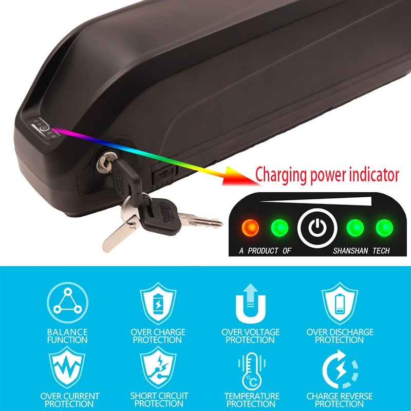 Функция защиты: перезарядка, перегрузка, Перегрузка по току, короткое замыкание, балансировка 48 В Аккумулятор 52 в 36 В батарея для электровелосипеда Hailong Downtube 20 17Ah BMS 18650 Cell, перезаряжаемая литиевая батарея с USB для электрического велосипеда