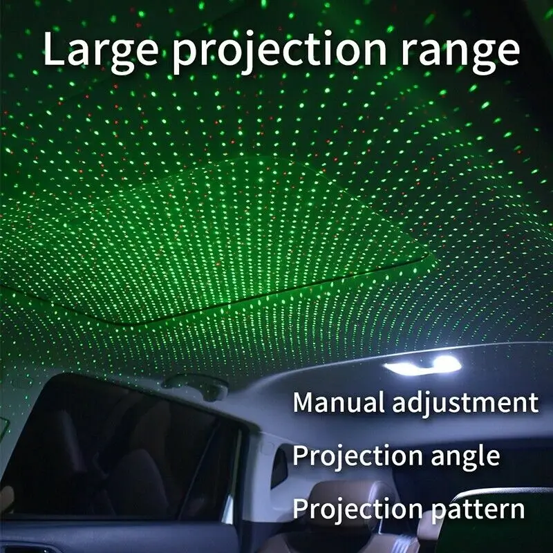 Двойной Цветной Звездный светильник Установка без потерь, подключи и работай Создайте романтическую атмосферу в автомобиле Пусть автомобиль полон романтической звездной атмосферы Увеличение удовольствия от вождения, вождение ночью больше не скучно Эффект проекционной лампы может быть изменен с помощью ручного вращения Звездная лампа с памятью, регулируемая в 360 направлении Нажмите, чтобы включить светильник, переключите три разных режима-1. Режим аудио 2. Режим мигания 3. Режим дыхания