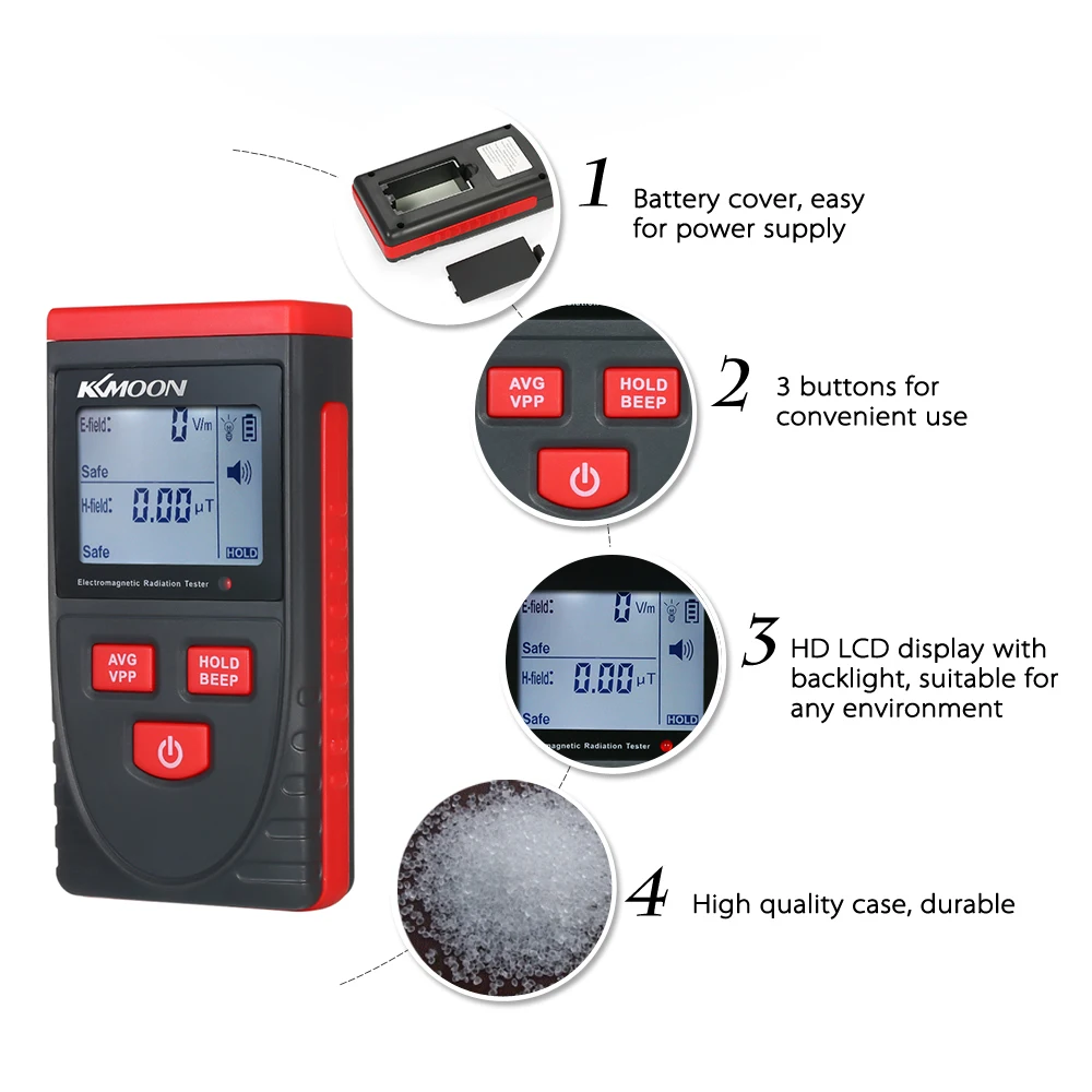 This meter can test electric field radiation and magnetic field emission to reach the optimal test result. It is used to test and learn electromagnetic radiation situation indoor and outdoor. It is equipped with a built-in electromagnetic radiation sensor, which can display the radiation value on the LCD digital display after processing by control micro-chip.