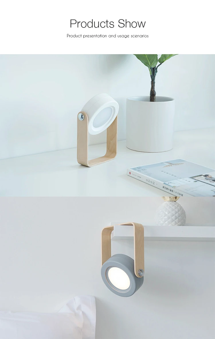 Портативный Ночной светильник-фонарь с деревянной ручкой, настольная лампа для чтения, портативный светильник-вспышка и другие сцены, регулируемый угол освещения на 360 °, регулировка яркости на три уровня, сенсорный выключатель, деревянная ручка, матовая краска-спрей, металлическое украшение.