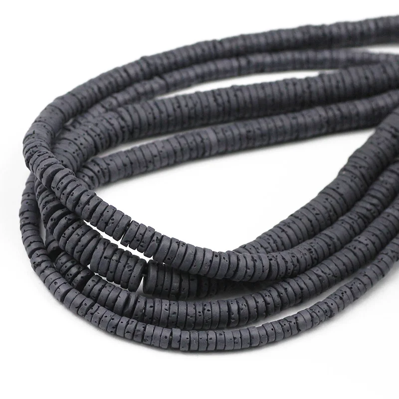 Натуральный черный камень из вулканической лавы бусины 4/6/8 мм плоские круглые монеты Распорки свободные бусины для самостоятельного изготовления ювелирных изделий для браслетов и ожерелий