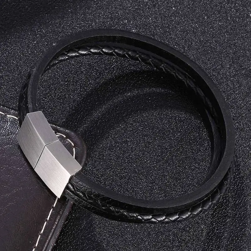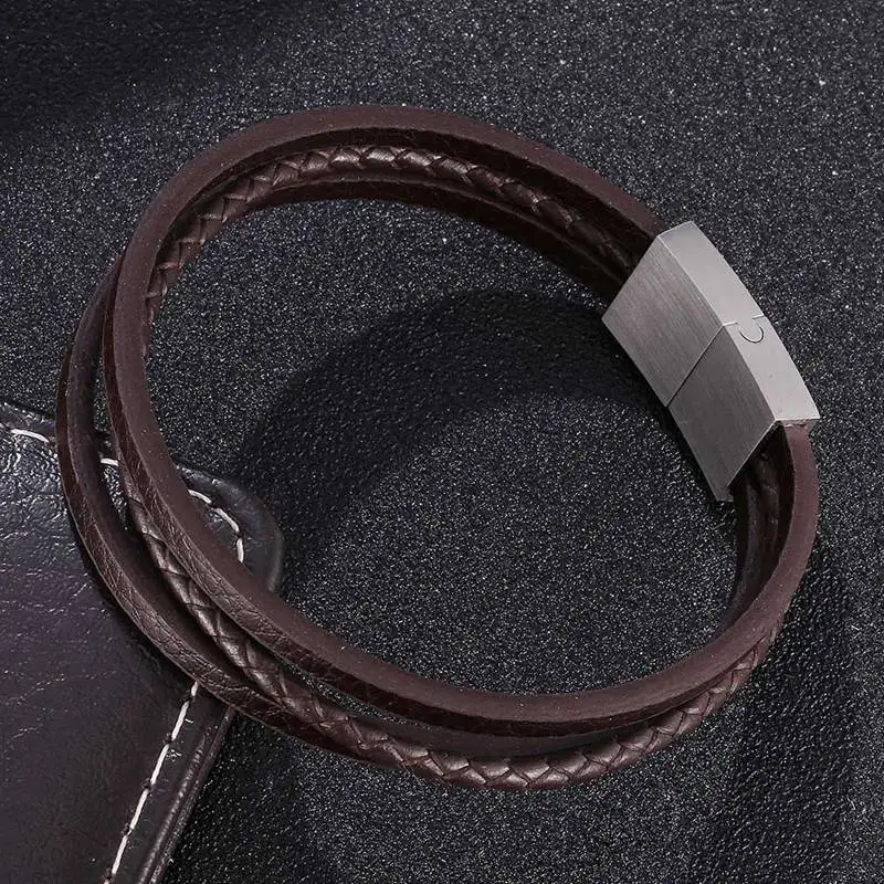 Браслет мужской из натурального камня коричневый браслет с черной магнитной