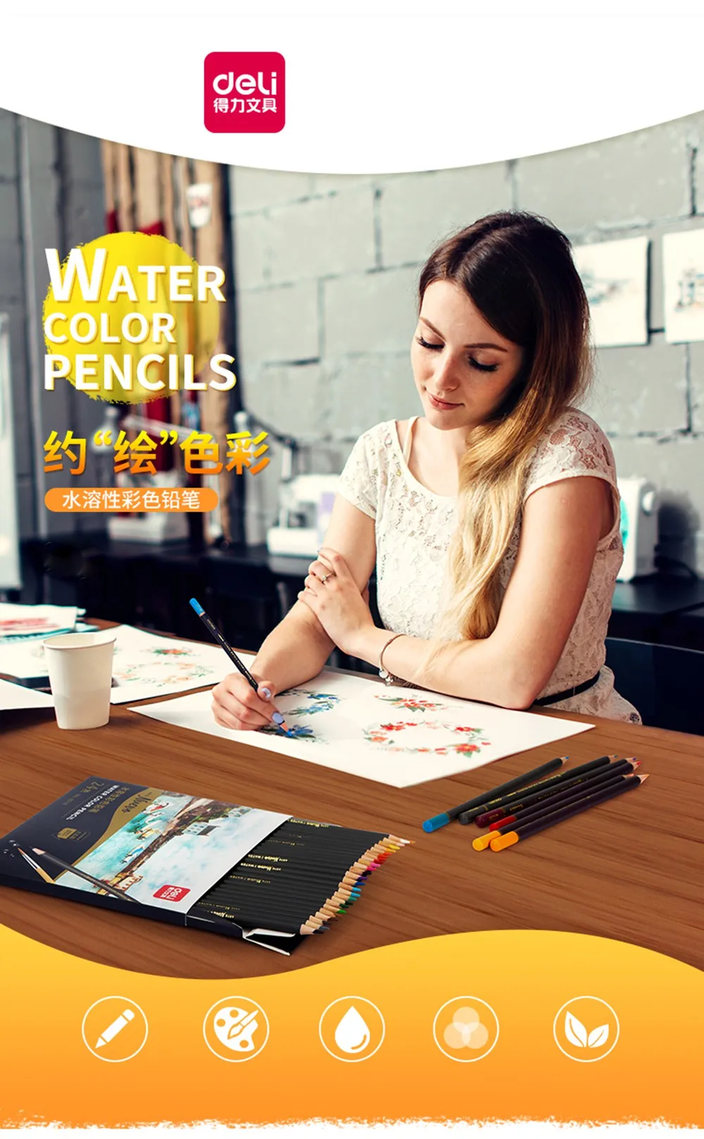 Цветные карандаши Deli, Профессиональные ручные карандаши 48 цветов, водорастворимые для рисования/дизайна/набросков/манги и т. д.