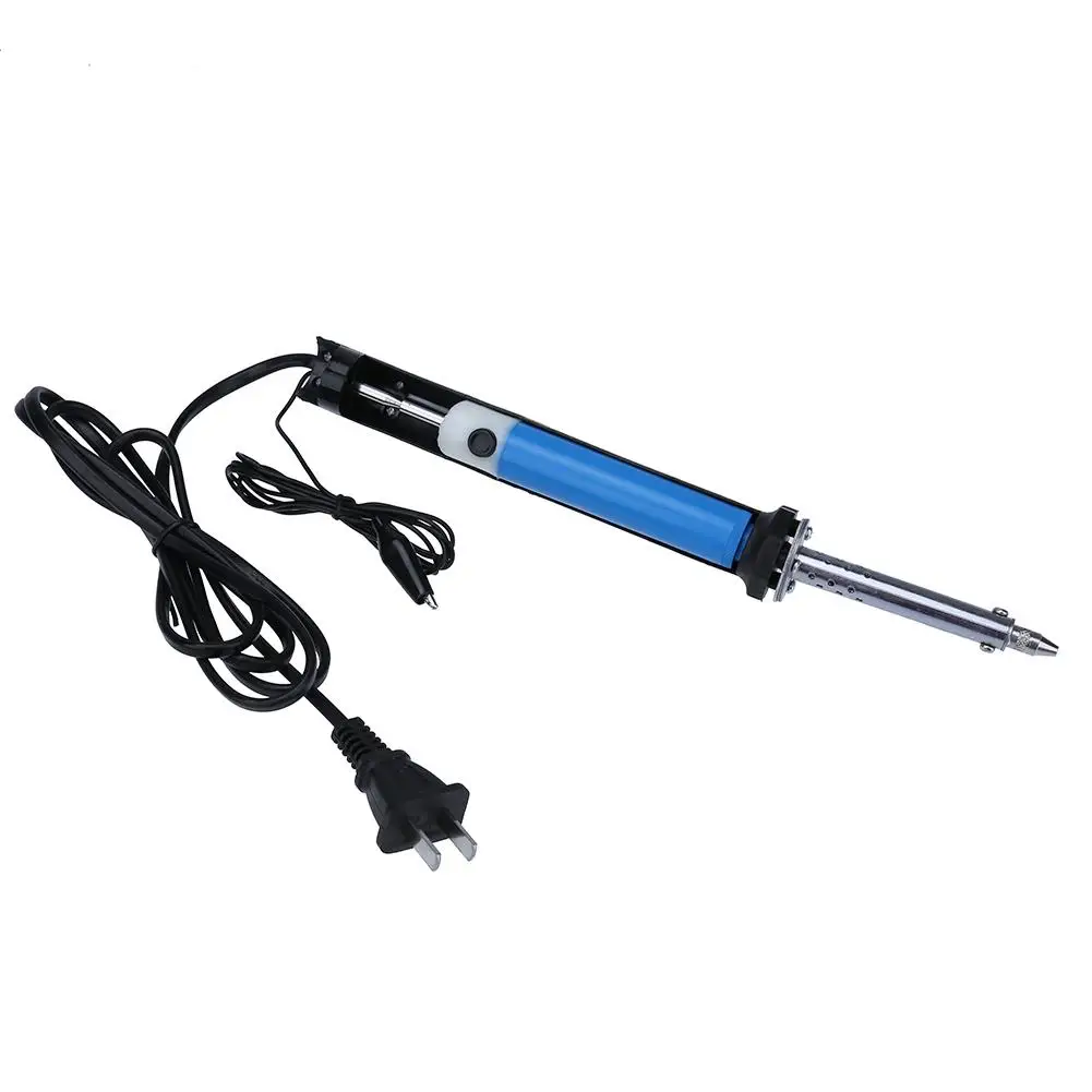 842A электрическая присоска двойного назначения имеет красивый внешний вид, легко отсасывает олово. Его можно использовать для снятия компонентов с печатной платы, не повреждая компоненты и печатные платы. Он специально используется для замены интегральных схем и многоножного переключателя. Присоска для олова может использоваться в качестве общего электрического утюга. Это важный инструмент для обороны, научных исследований, связи, аэрокосмической, компьютерной, радио, телевидения, электронного профессионального технического персонала и большинства радио-энтузиастов. Инструкции: 1. Он использует источник питания 220 В 50 Гц с мощностью 30 Вт; 2. Включите питание, подогрев в течение 3-5 минут; 3. Нажмите на рукоятку поршня, поместите насадку для всасывания олова на паяльную часть; После расплавления олова нажмите кнопку управления, припой всасывается в цилиндр; 4. Устройство всасывания олова оснащено двумя всасывающими насадками различного диаметра в зависимости от толщины свинца компонента; 5. При сварке, такая же работа, как и паяльник; 6. При разборке цилиндра нажмите вниз по верхней части цилиндра в соответствии с направлением стрелки, вытяните цилиндр и ручку в то же время, и цилиндр может быть разделен; при разборке всасывающего сопла поверните его против часовой стрелки и удалите; Примечания: 1. Проверьте, соответствует ли напряжение, слишком высокое или слишком низкое напряжение не способствует использованию; 2. Перед использованием поверните цилиндр и всасывающее сопло плотно, чтобы предотвратить утечку. В противном случае это повлияет на всасывание. 3. Очистите припоя в всасывающем сопле и цилиндре часто, и добавьте немного масла в поршень; 4. Каждый раз после использования, Нажмите поршень 3-4 раза, чтобы удалить остаточную солому для всасывания сопла и соломы следующего гладкого использования; 5. Всасывающее Оловянное устройство строго запрещено устанавливать и удалять часть его электрических частей при включении. 6. Это нормально, что есть немного дыма из-за нагрева, когда первый раз использовать новый оловянный всасывающий насос. Он исчезнет через десять минут. 7. При использовании необходимо использовать основание для паяльника с естественным охлаждением, а присоска должна быть помещена в железное основание. 8. Если шнур питания поврежден, во избежание опасности он должен быть заменен производителем или отделом обслуживания или аналогичным штатным персоналом. 9. Этот продукт имеет заземляющий провод, который должен использоваться вместе с гнездом с контактами. Пожалуйста, обратите внимание на безопасность.