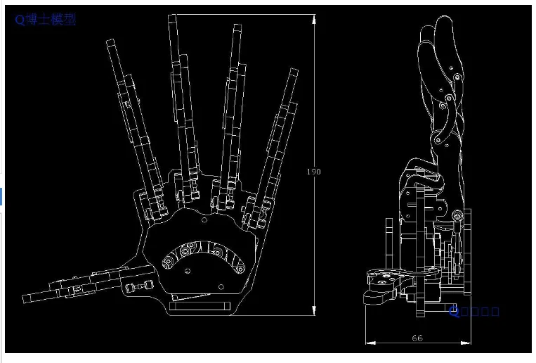 3) продукт включает только структурные детали и рулевое колесо, а для перемещения пальцев требуется Плата управления и источник питания.