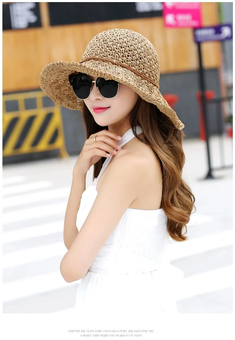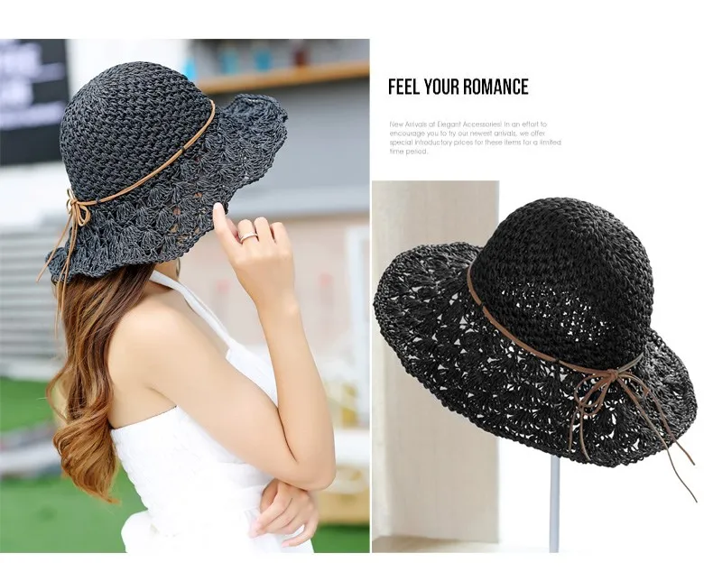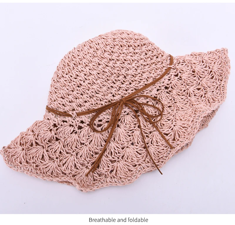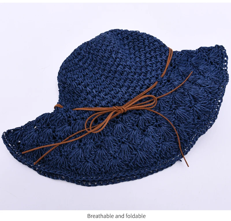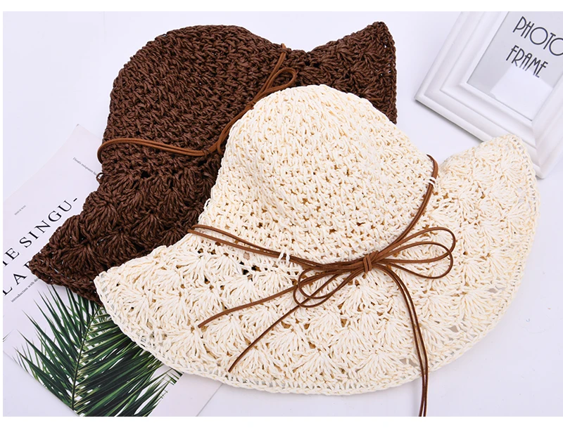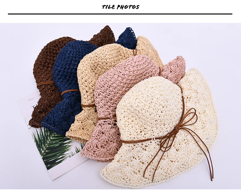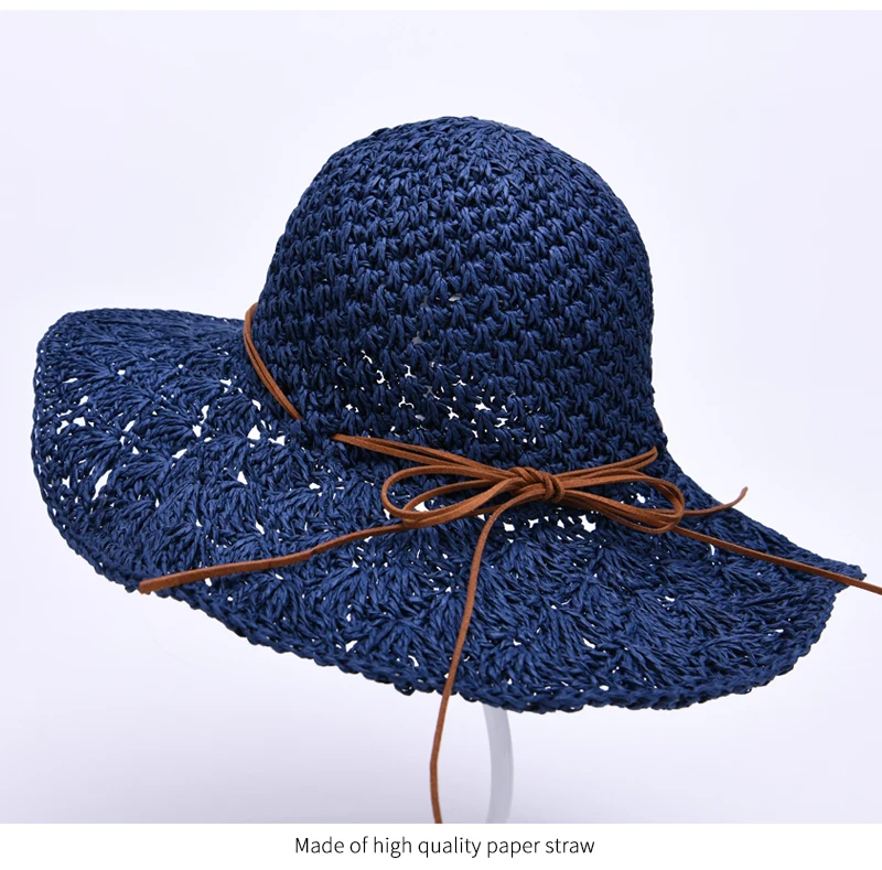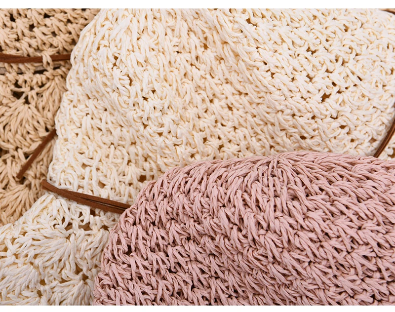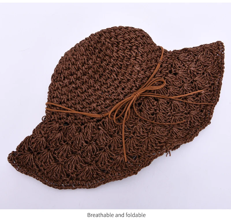 Женская летняя шляпа ручной работы, соломенная шляпа, бумажная солома, вязанная крючком, Солнцезащитная Складная Солнцезащитная шляпа для улицы
