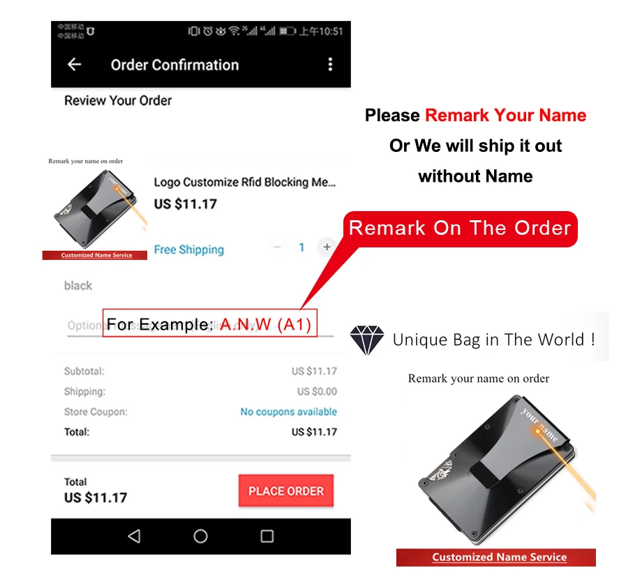 1. Пожалуйста, укажите свое имя в заказах, если вам нужна гравировка, иначе мы отправим товар без гравировки.