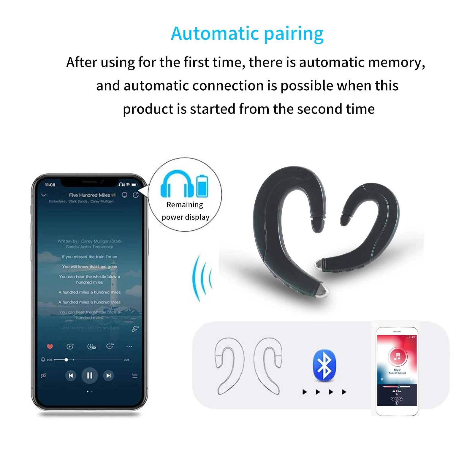 В связи с 8,5g легкий дизайн, ушной крючок типа жесткаяЧтобы отвалиться, и в то же время, это не вызывает дискомфорта для уха, даже если он носится в течение длительного времени