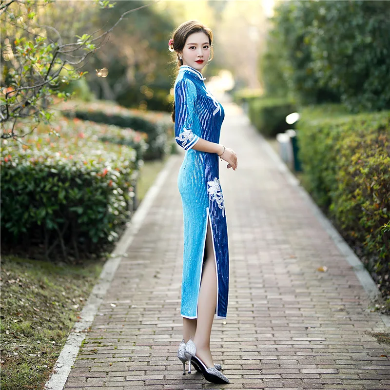 Женское винтажное платье-Ципао Белое Облегающее вечернее платье в китайском