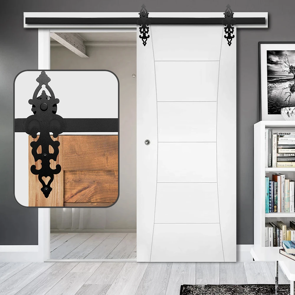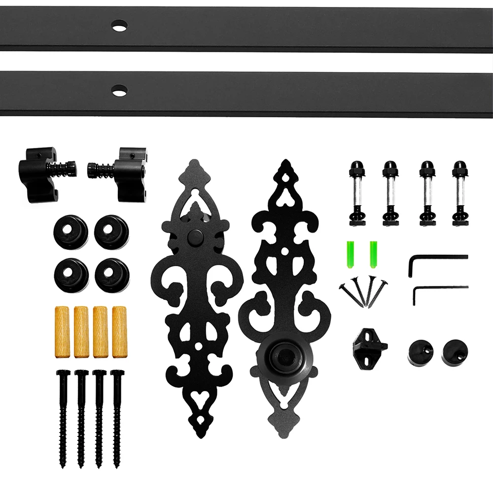 HACCER 4-16FT деревянное оборудование для раздвижной двери сарая комплект из углеродистой стали симметричный цветок в форме дорожки ролики для межкомнатных однодверных