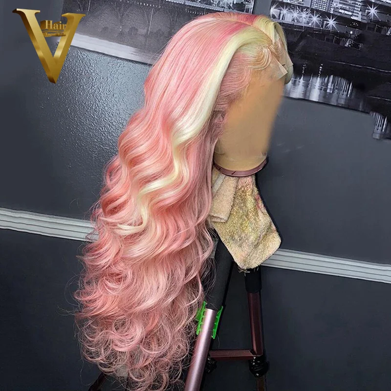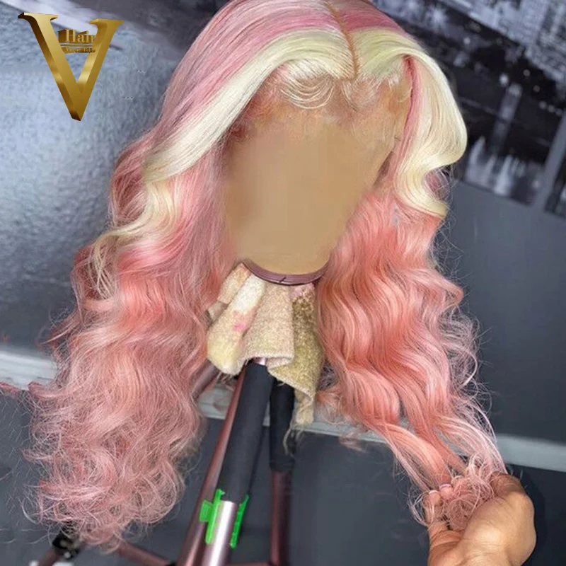 Светлый розовый парик из натуральных волос с предварительно выщипанной естественной линией волос