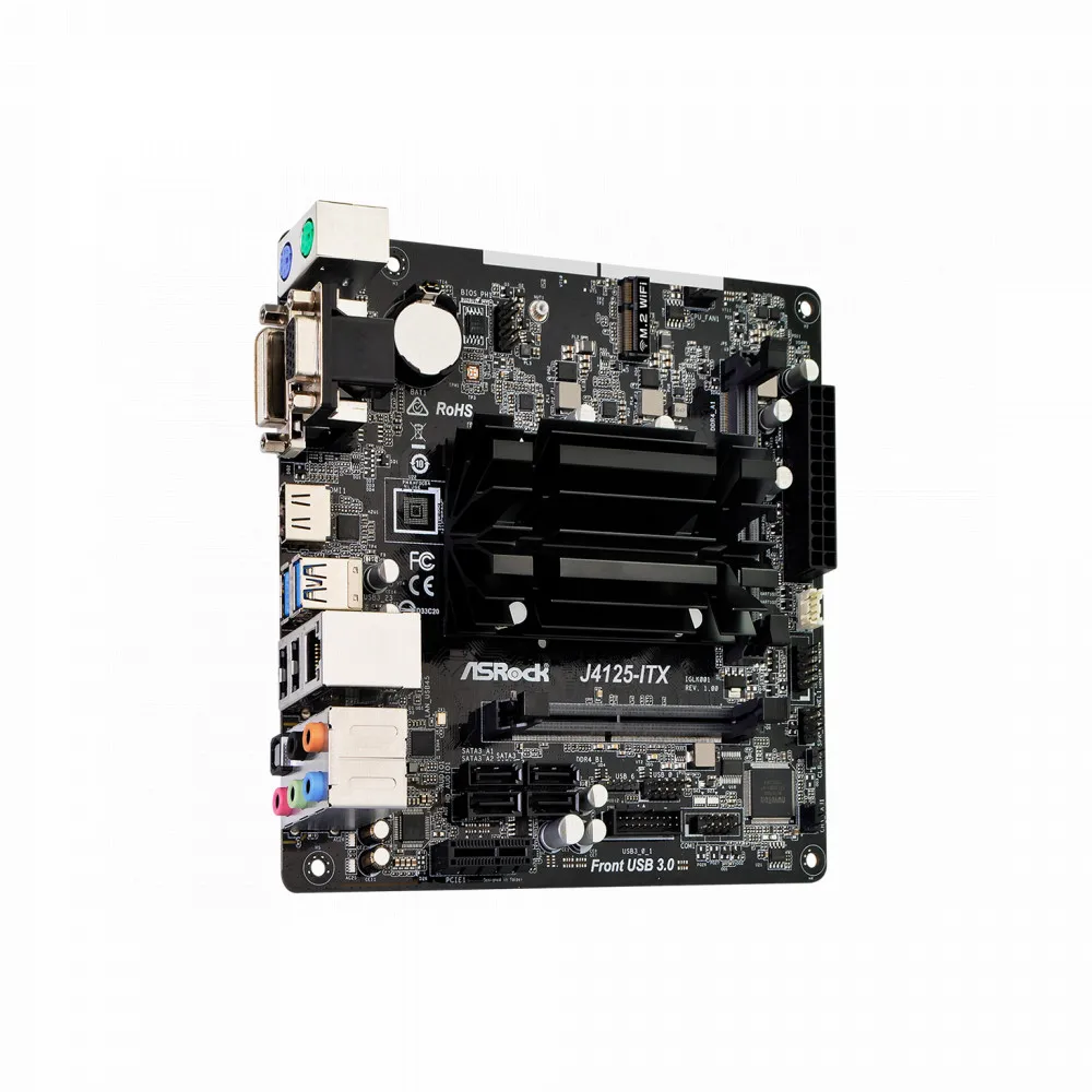 Материнская плата ASRock J4125-ITX в форм-факторе mini-ITX со встроенным процессором Intel Celeron J4125. Плата оборудована достаточным количеством разъемов, чтобы подключить всю необходимую периферию и комплектующие. Ее отличительной особенностью является защищенная от влаги конструкция (High Density Glass Fabric PCB). Зазоры между платами уменьшены, что дает дополнительную защиту от вызываемого влажностью короткого замыкания.