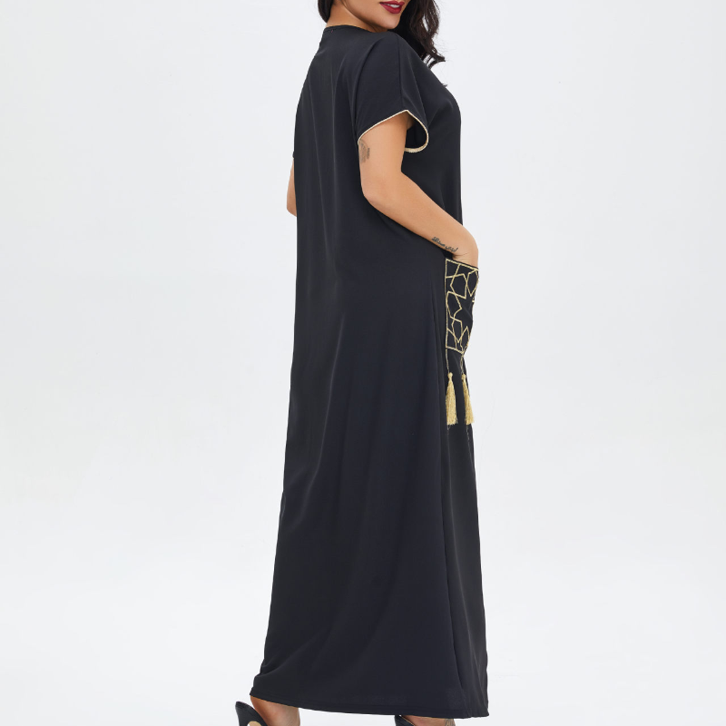 Женское мусульманское платье Eid Mubarak, мусульманское модное платье в Дубае, Турецкая мусульманская одежда с золотой вышивкой и кружевным поясом с кисточками