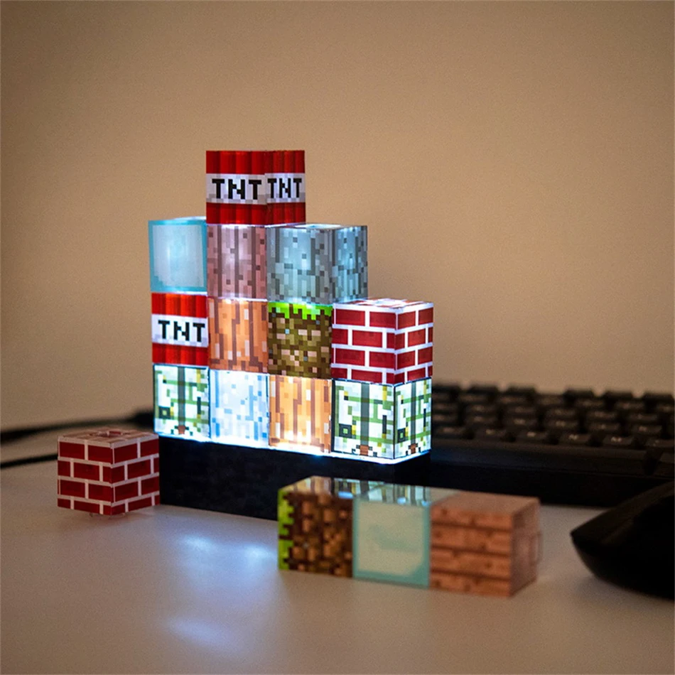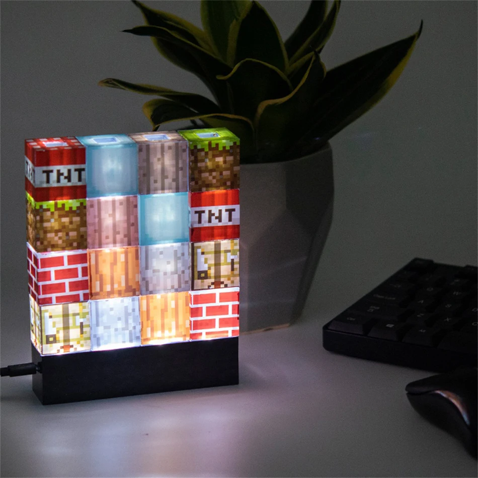 Блочный строительный светильник, заряжаемый от USB, блочный светильник, светодиодная лампа типа кнопки, настольное украшение, подарок для детей
