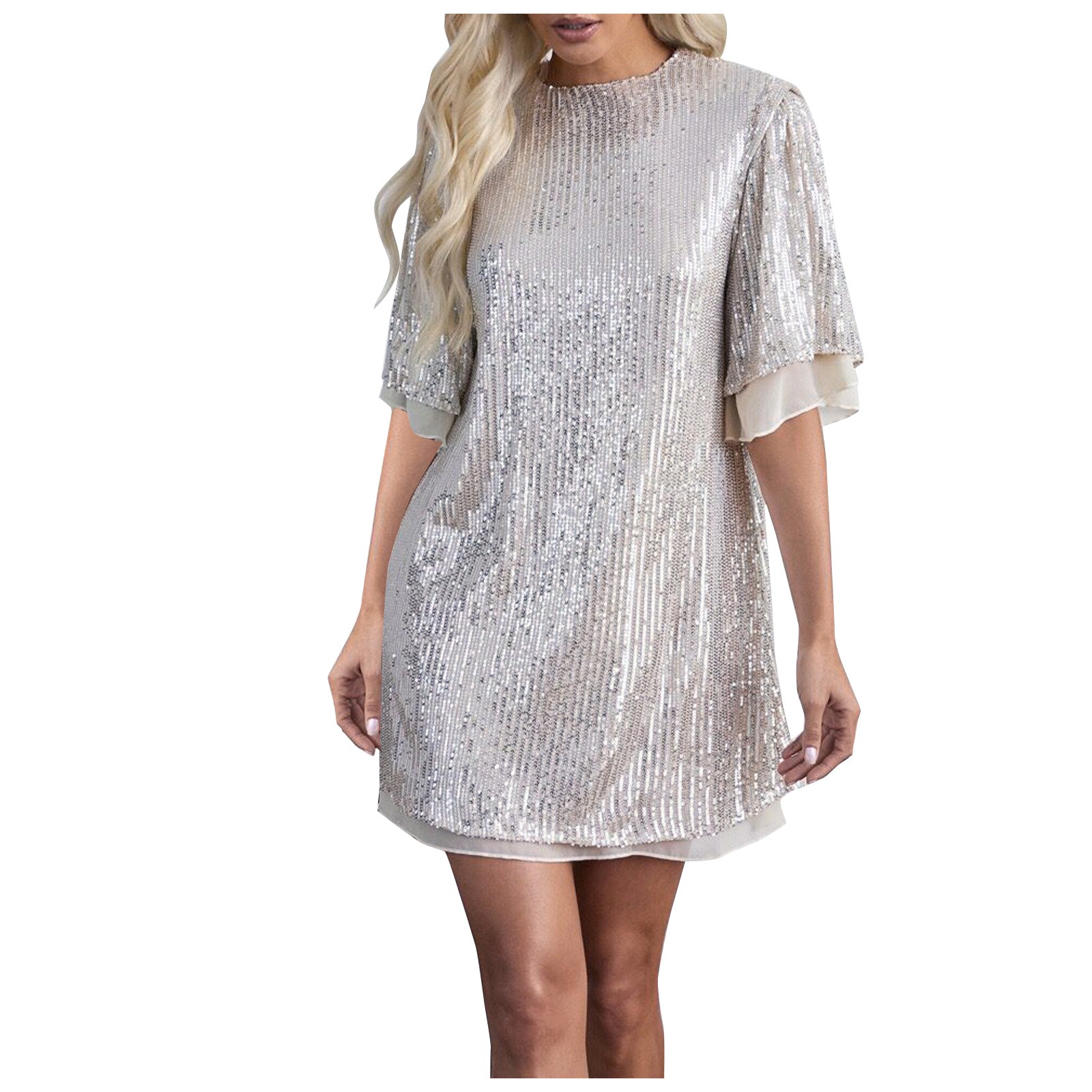 Женское модное сексуальное платье с блестками и круглым вырезом с коротким рукавом