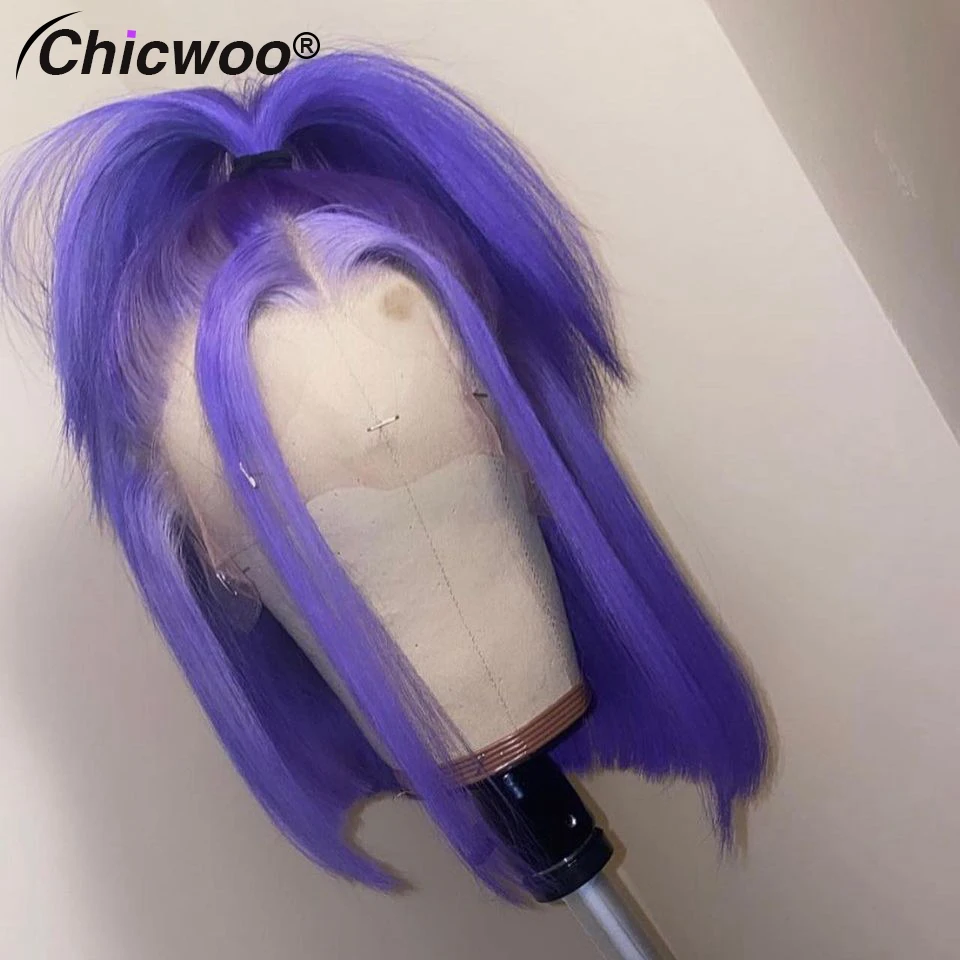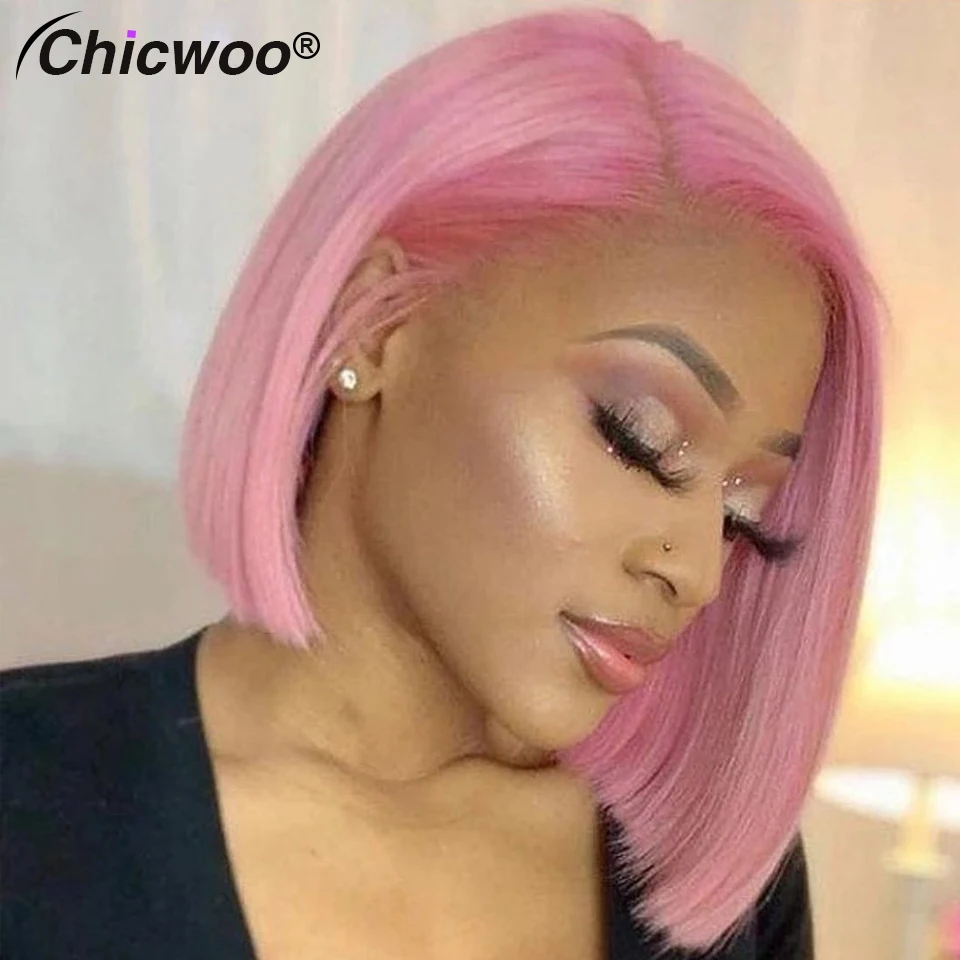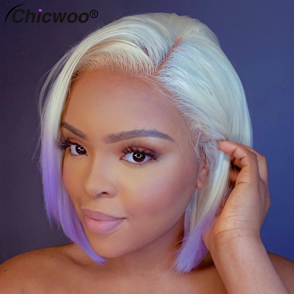 Прямые T613/фиолетовые короткие человеческие волосы боб парики бразильские Реми 150% плотность блонд розовый боб парик шнурка спереди прозрачные парики шнурка