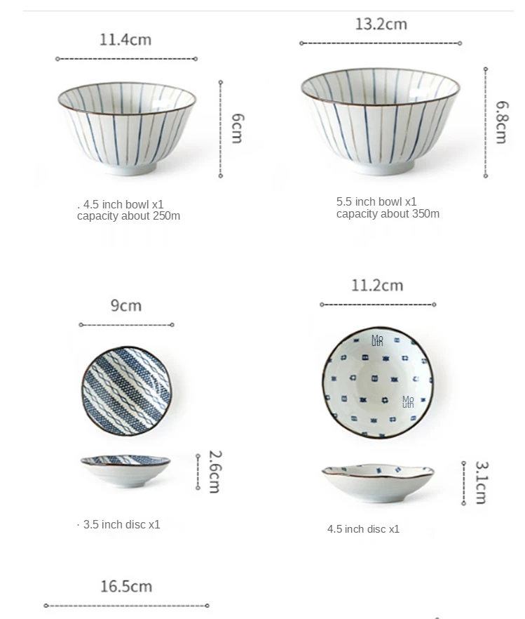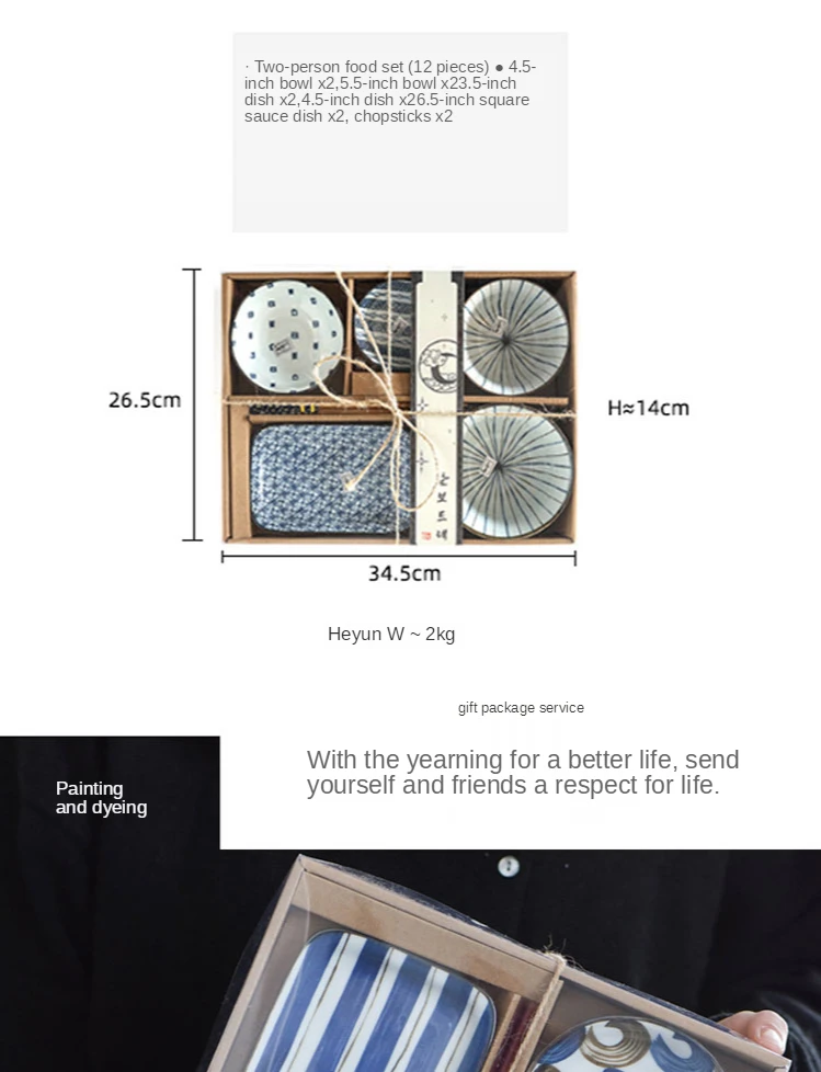 · Набор пищи для двух человек (12 шт.) ● миска 4,5 дюйма x 2, миска 5,5 дюйма x блюдо 23,5 дюйма x 2, блюдо 4,5 дюйма x квадратное блюдо 26,5 дюйма x 2, палочки для еды x 2