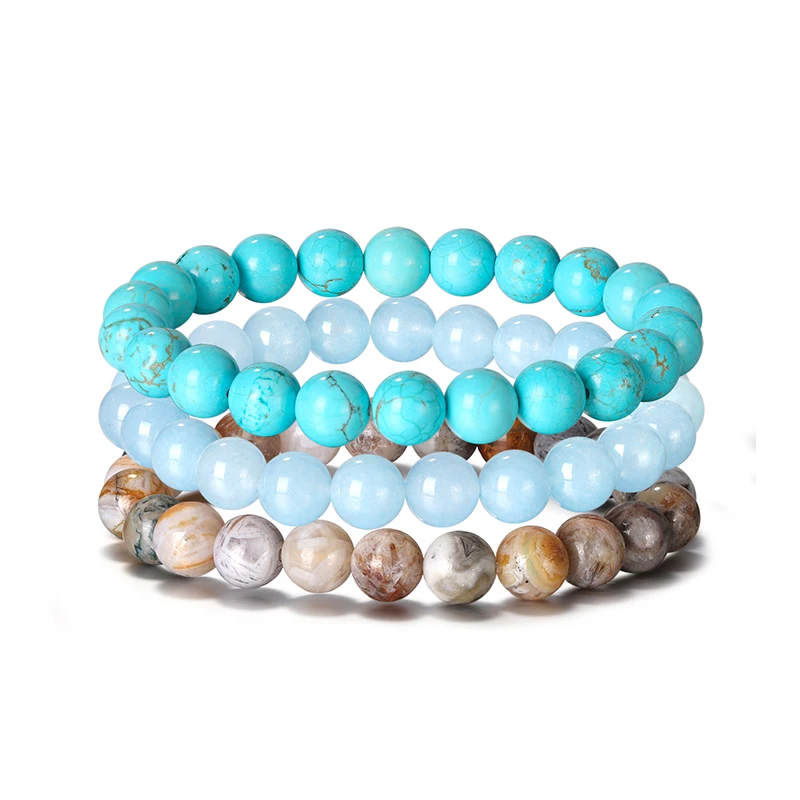 ORSA JEWELS 3 шт./компл. бирюзовый браслет из бисера Howlite Аквамариновый камень для женщин и мужчин, браслет из натурального камня, ювелирные изделия на удачу