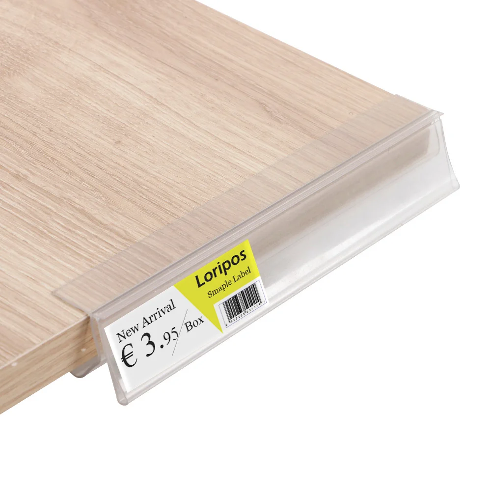 Планка с зажимом для этикеток на полках с гибкой задней захваткой для дисплея ценового билета из дерева/металла/стекла. Вы можете легко вставить свой бумажный ярлык. Для индивидуальной длины Минимальный заказ составляет 1000 метров.