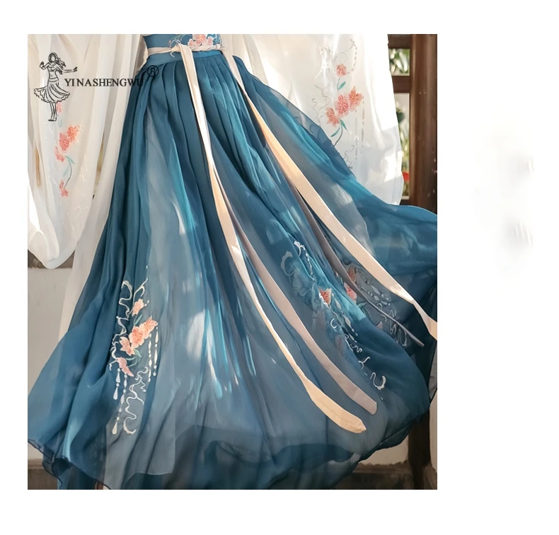 Женский китайский традиционный ханьфу костюм новый стиль леди династия Хань платье вышивка Династия Тан принцесса народная танцевальная одежда