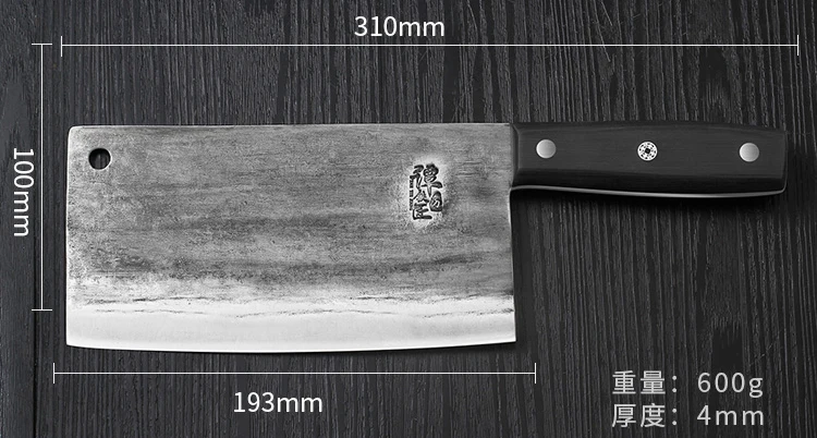 Материал: Кованая Высокоуглеродистая сталь Длина ножа: 31 см Длина лезвия: 19,3 см Ширина лезвия: 10 см Толщина: 4 мм Вес: 0,6 кг