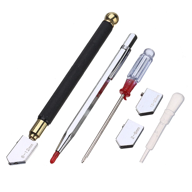 Содержит стеклянный резак, 2 дополнительных режущего головки, масляную капельницу, отвертку и режущую ручку.