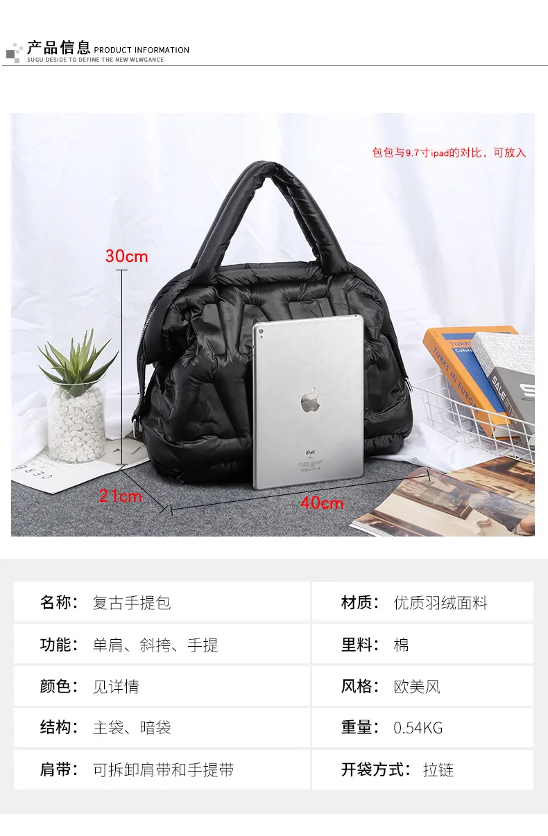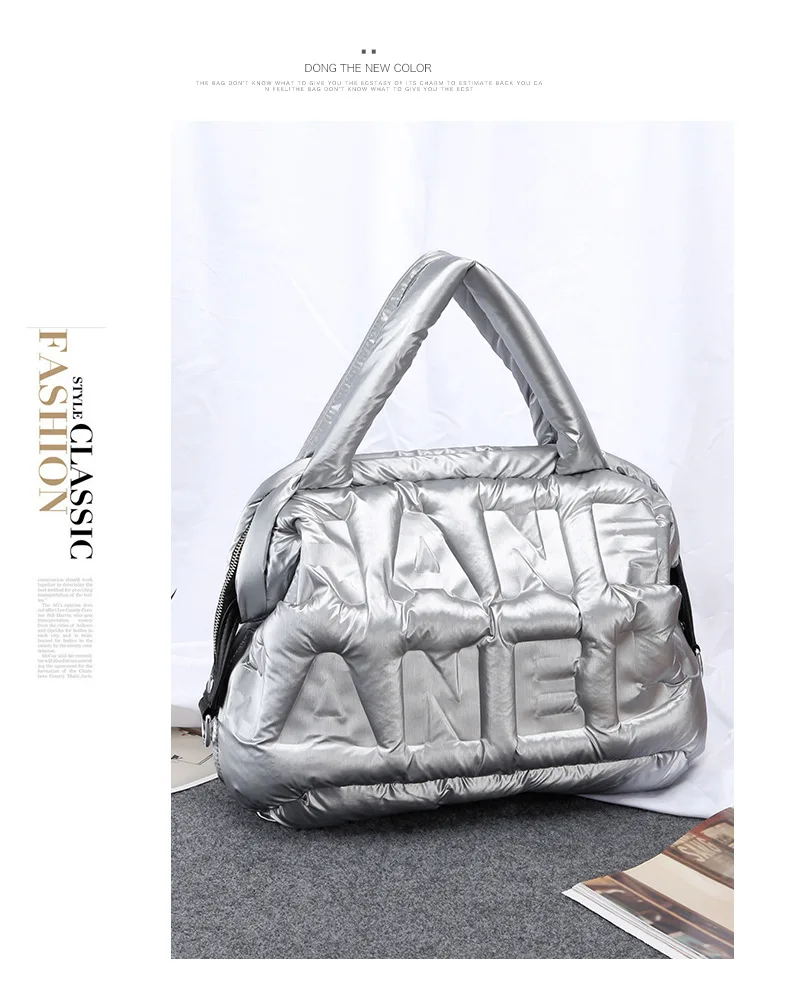 2022 новая зимняя Большая вместительная сумка на плечо для женщин, водонепроницаемые нейлоновые сумки, Космический коврик, хлопковый пуховик через плечо