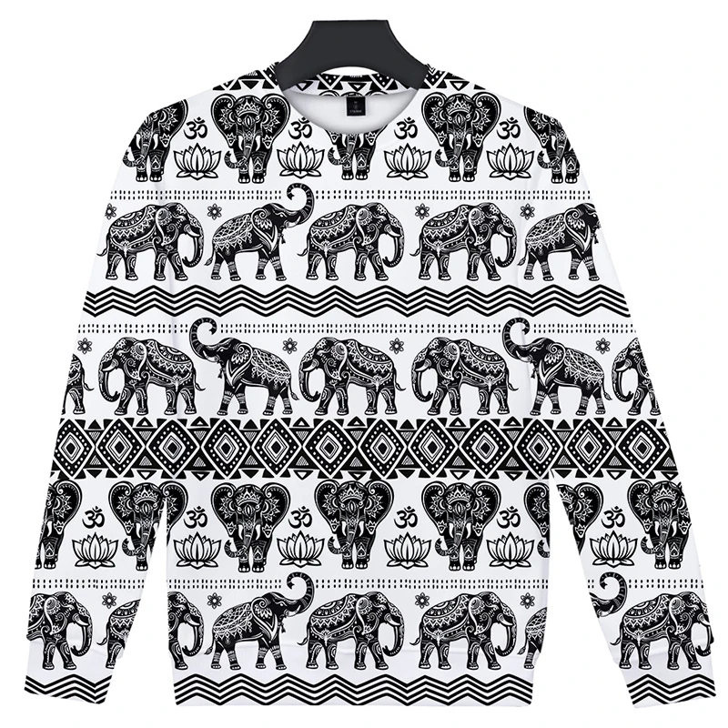 Harajuku Индийский слон 3d толстовки пуловер модная мужская и женская толстовка без шапочки Топы с длинным рукавом Толстовка уличная одежда 4XL